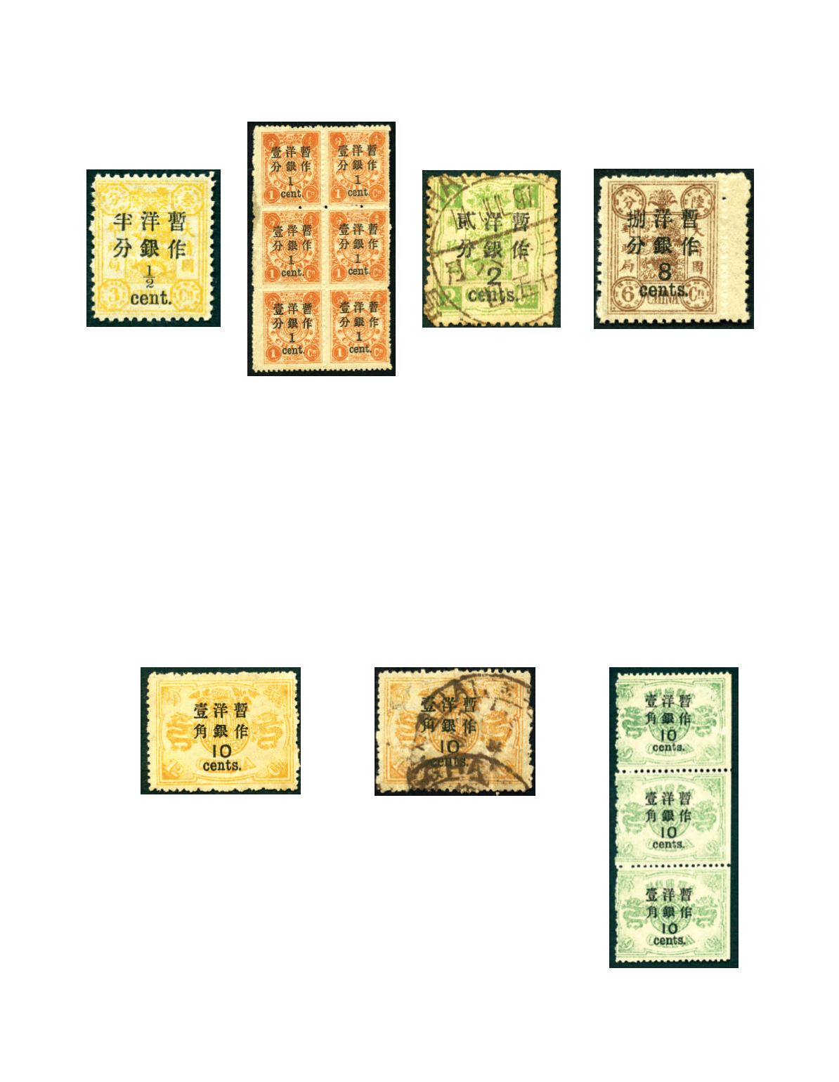 1897 Dowager large figures surcharged 1.50mm on first printing, 1/2c on 3 cands orange yellow, mint and full original gum. Chan