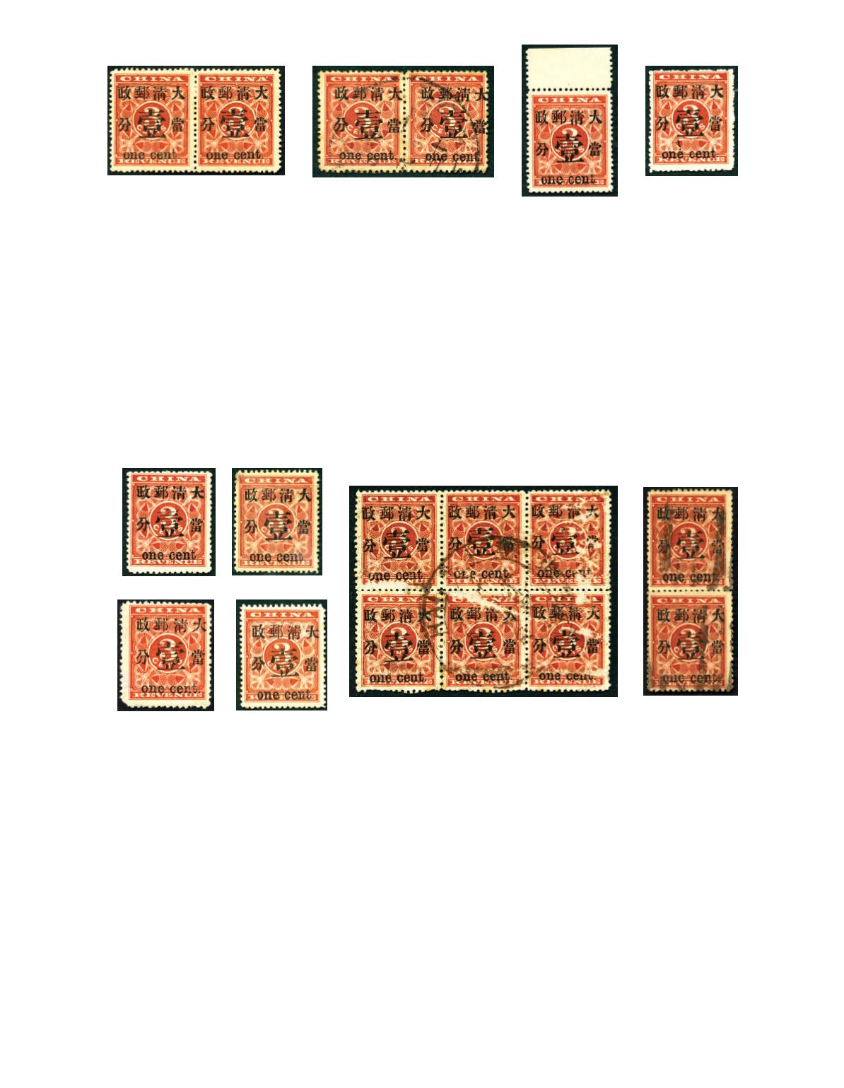 1897 Large figures surcharged 1c on 3c block of 6, one stamp with large box center char. variety, tied by 'SHANGHAI' Dollar chop,