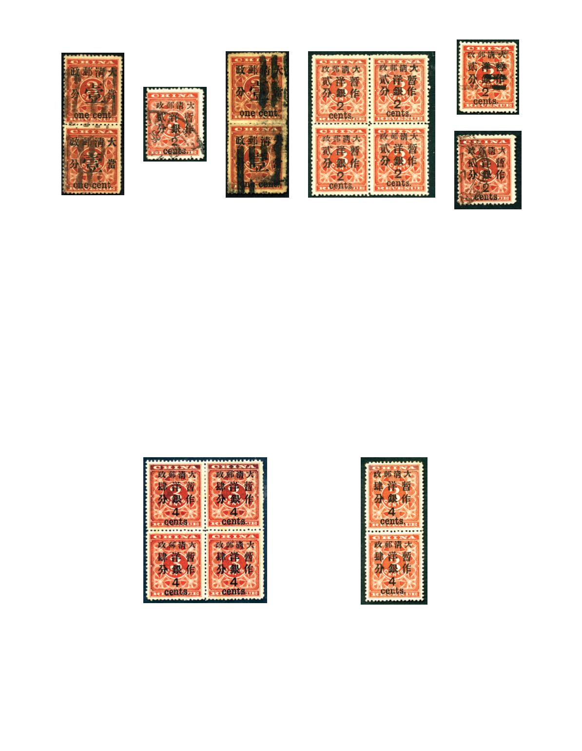 1897 Large figures surcharged 2c on 3c block of 4, mint and no gum. Chan 88. Photo