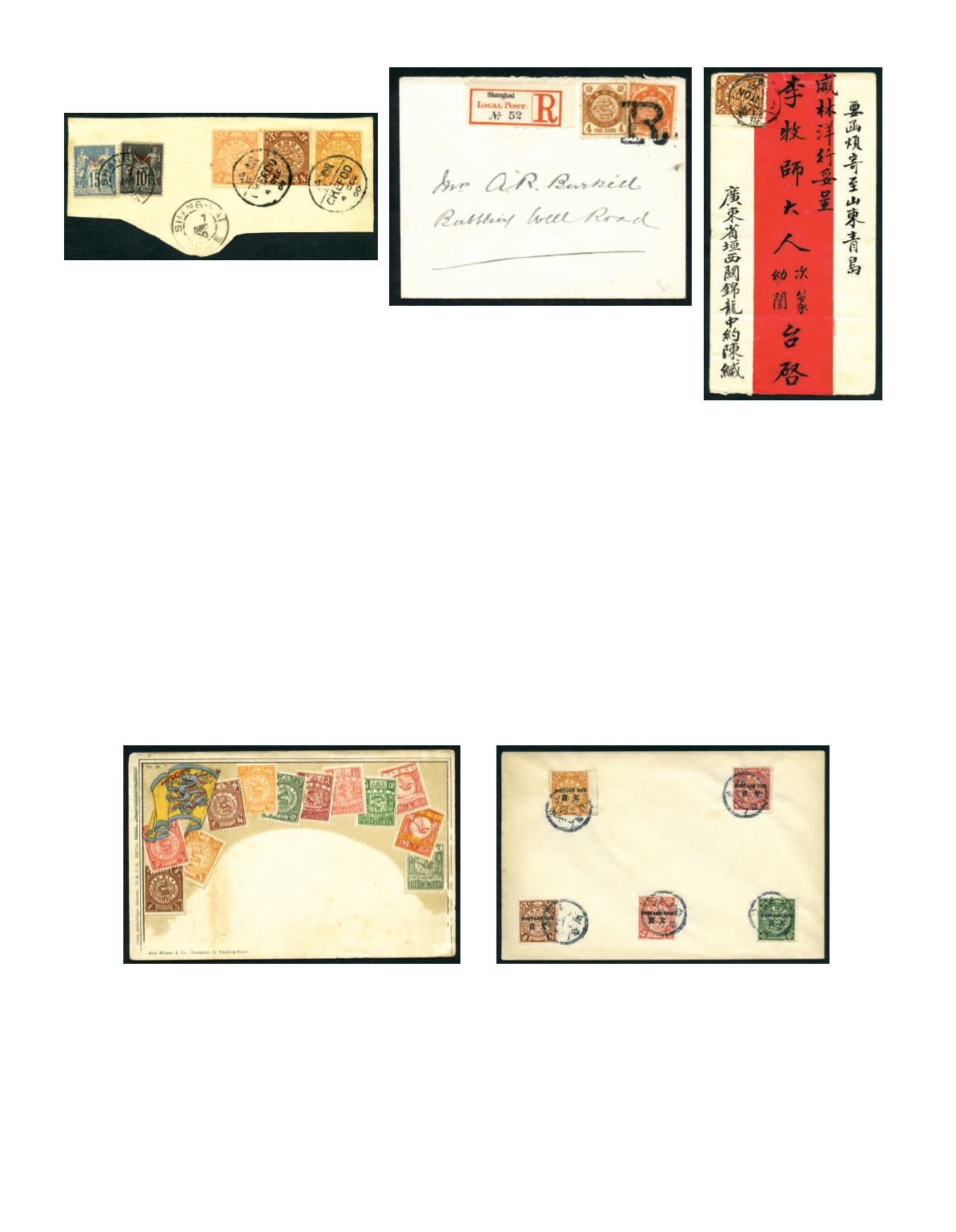 1900’s A cover reg. to Shanghai local, bearing Type Coiling Dragon 2c and 4c tied by large ‘R’ reg. chop in black, with