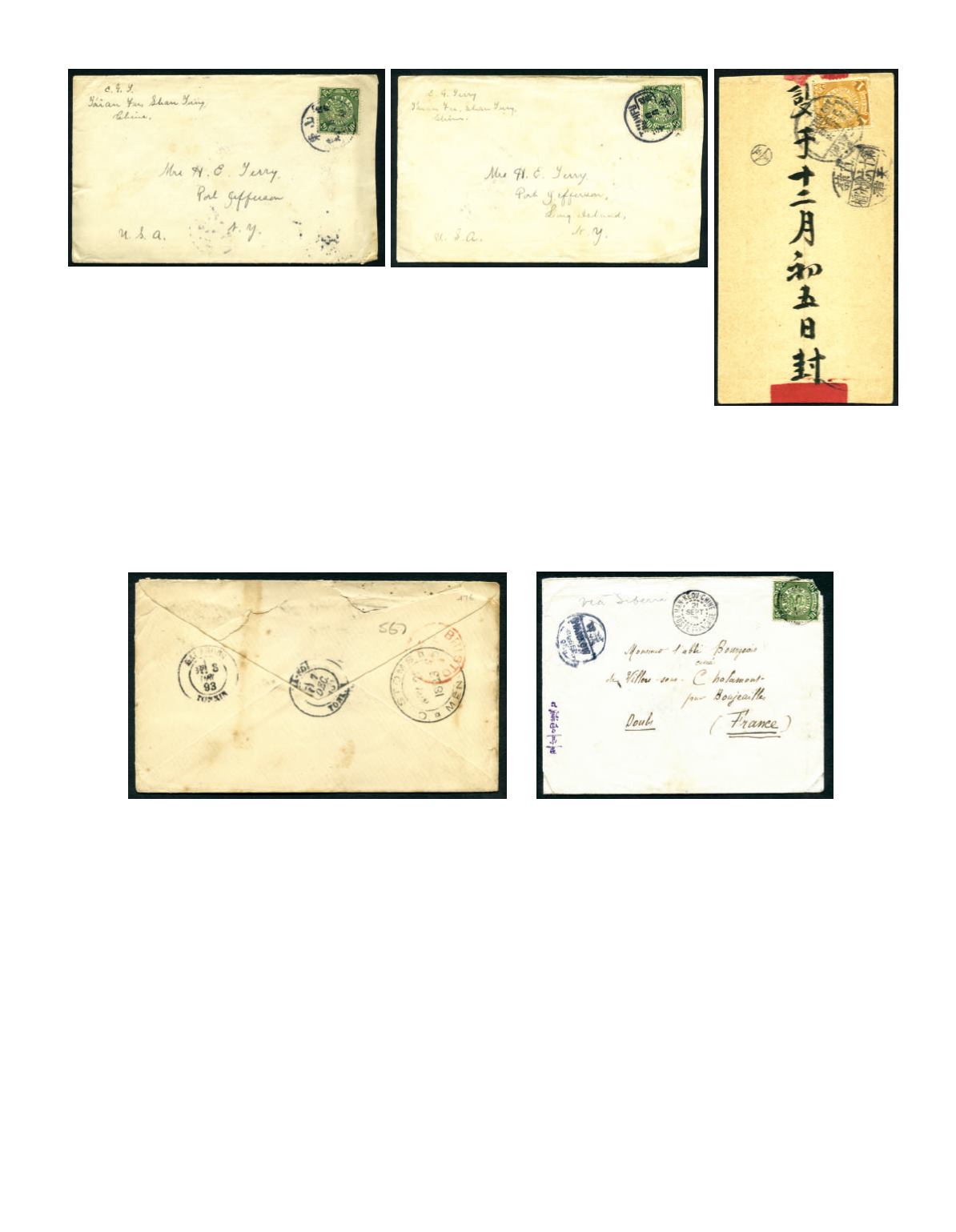 ‘SHANGHAI/3.1.11’ transit and ‘CHINKIANG/4.1.11’ arrival cds. A few stain marks. Photo