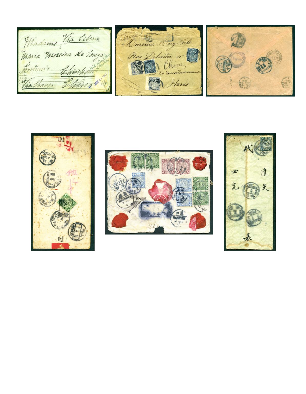 'HANKOW/14.4.10', 'PEKING/16.4.10' transit. and a faint reg. frame chop, on front with another type of faint reg. frame chop and