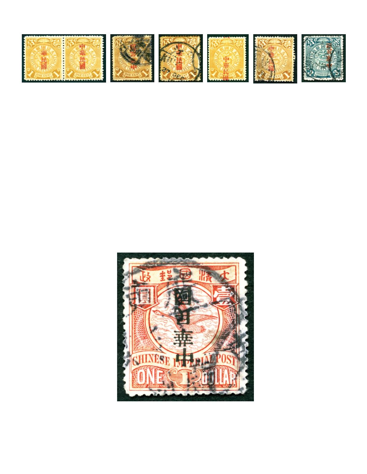 1912 Statistical Department overprint 'ROC' on Coiling Dragon 1c with broken top of 'One' variety, fine used. Chan 153c. Photo