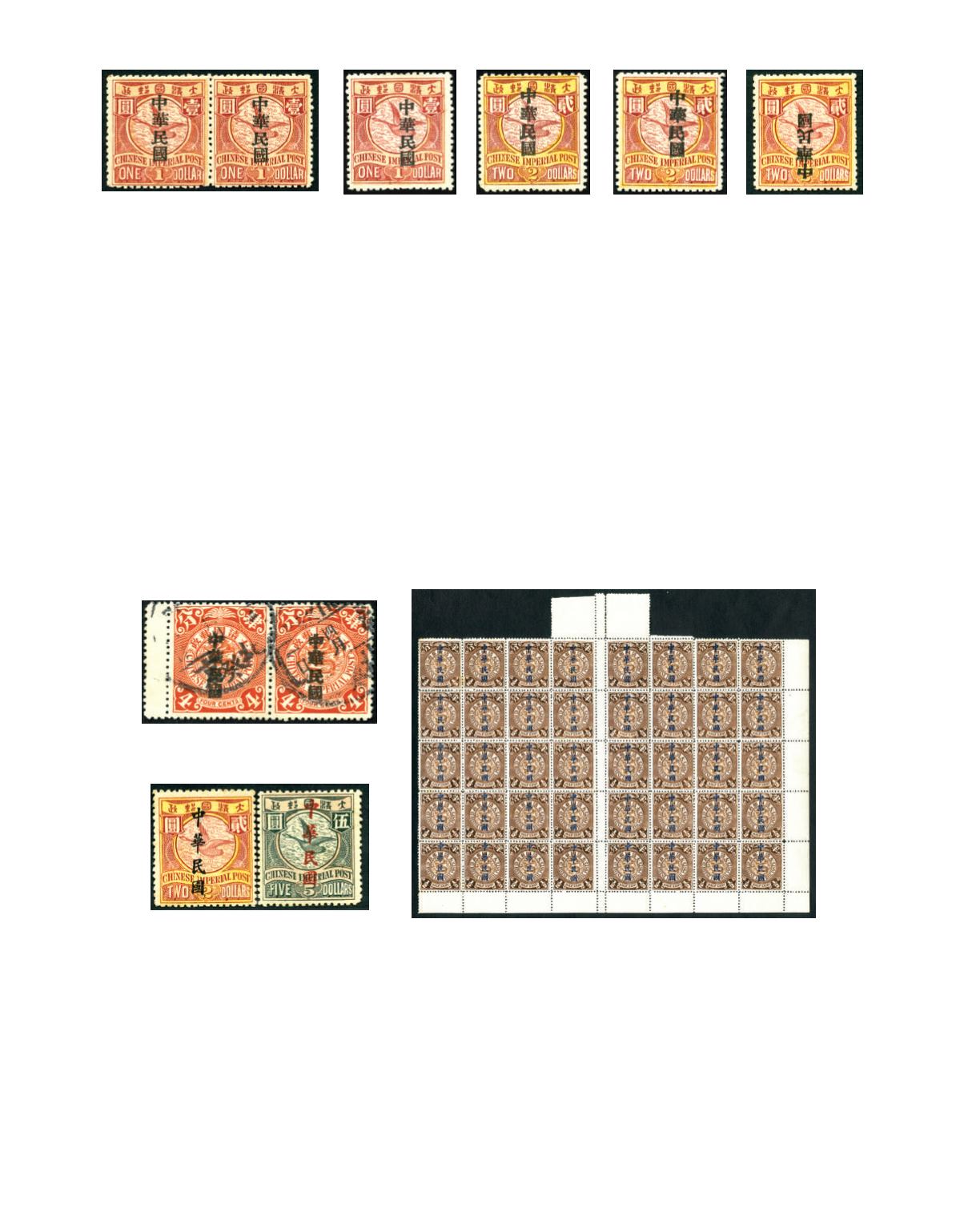 1912 A small selection of opt. ‘ROC’ on Coiling Dragon low values in pairs, total 6 pairs comprising 14 stamps. Photo