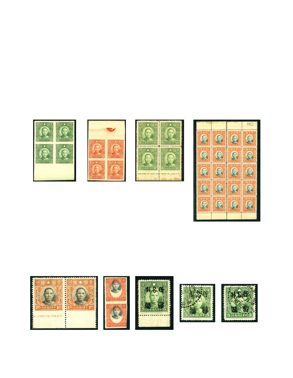 1940 SYS Dah Tung print no watermark, $2 block of 9, block of 10, block of 20 x 2, and $5 block of 10 x 4, unused and toned.