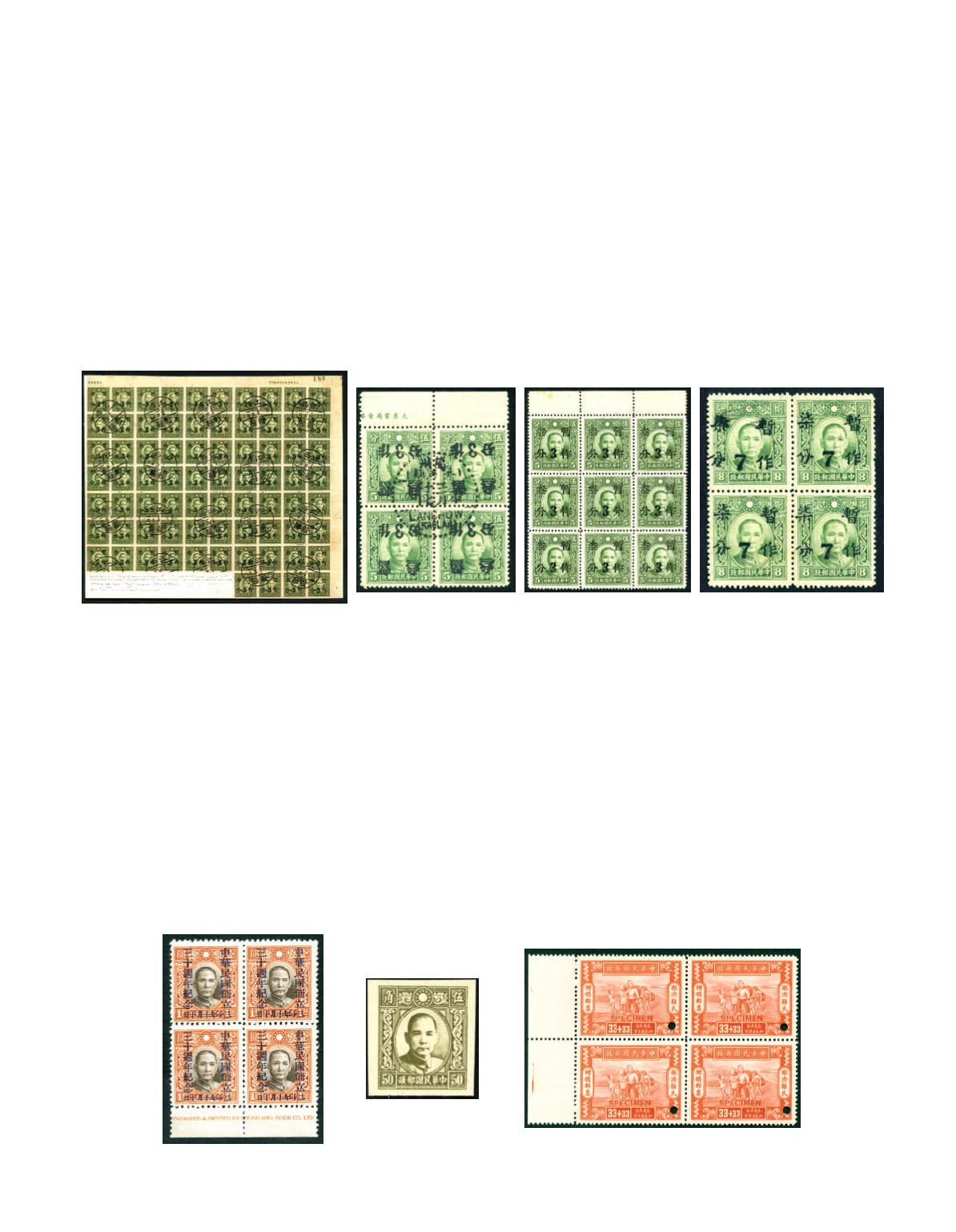 1941 and 1945 A small range of SYS Central Trust print 50c and $20 and Chungking Dah Tung print, $5 and $20, all in blocks of
