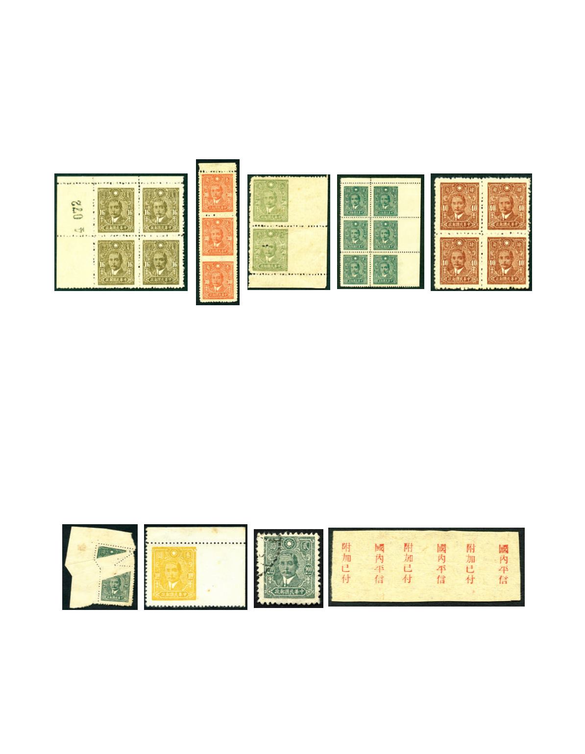 1941 The 30th Anniv of The Republic of China 1c to $1 complete of 10 in block of x 2, each block with imprint at the bottom, mint