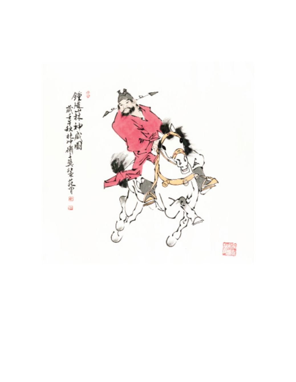 Fan Zheng (1938-) Scroll Painting - Zhongkui riding a Horse.