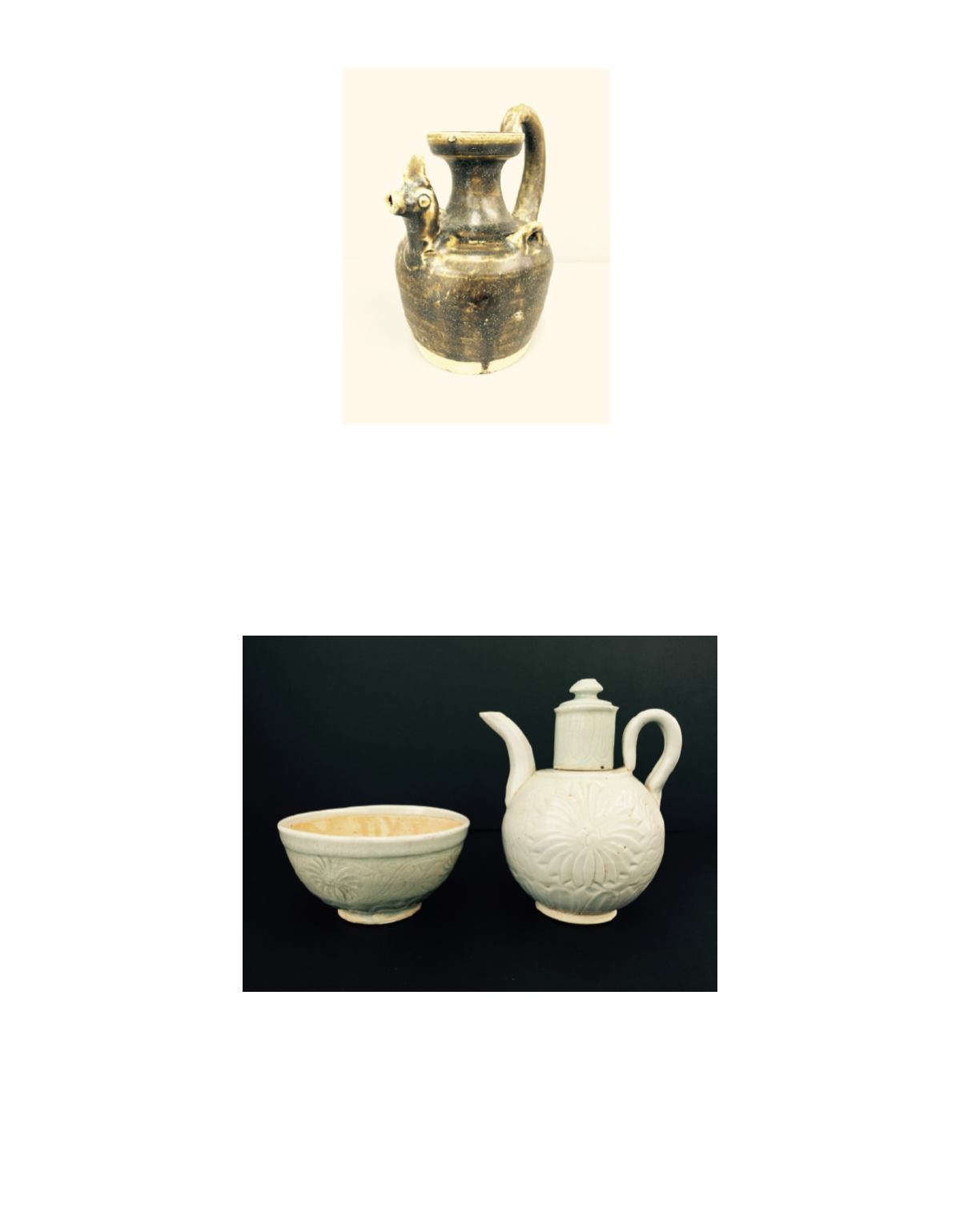 宋朝-影青提壺連碗,好工藝,出土器。