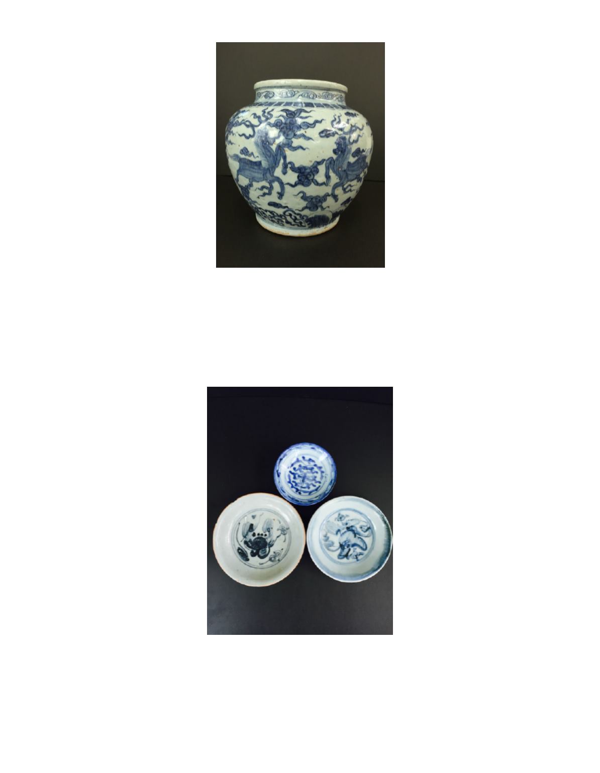 明朝- 青花飛馬罐,罐身週邊有破損.