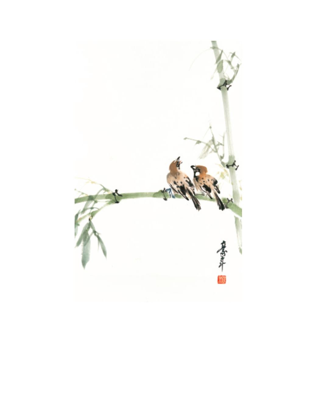 Ou Haonien (1935-) Scroll Painting - Two Birds Singing.
