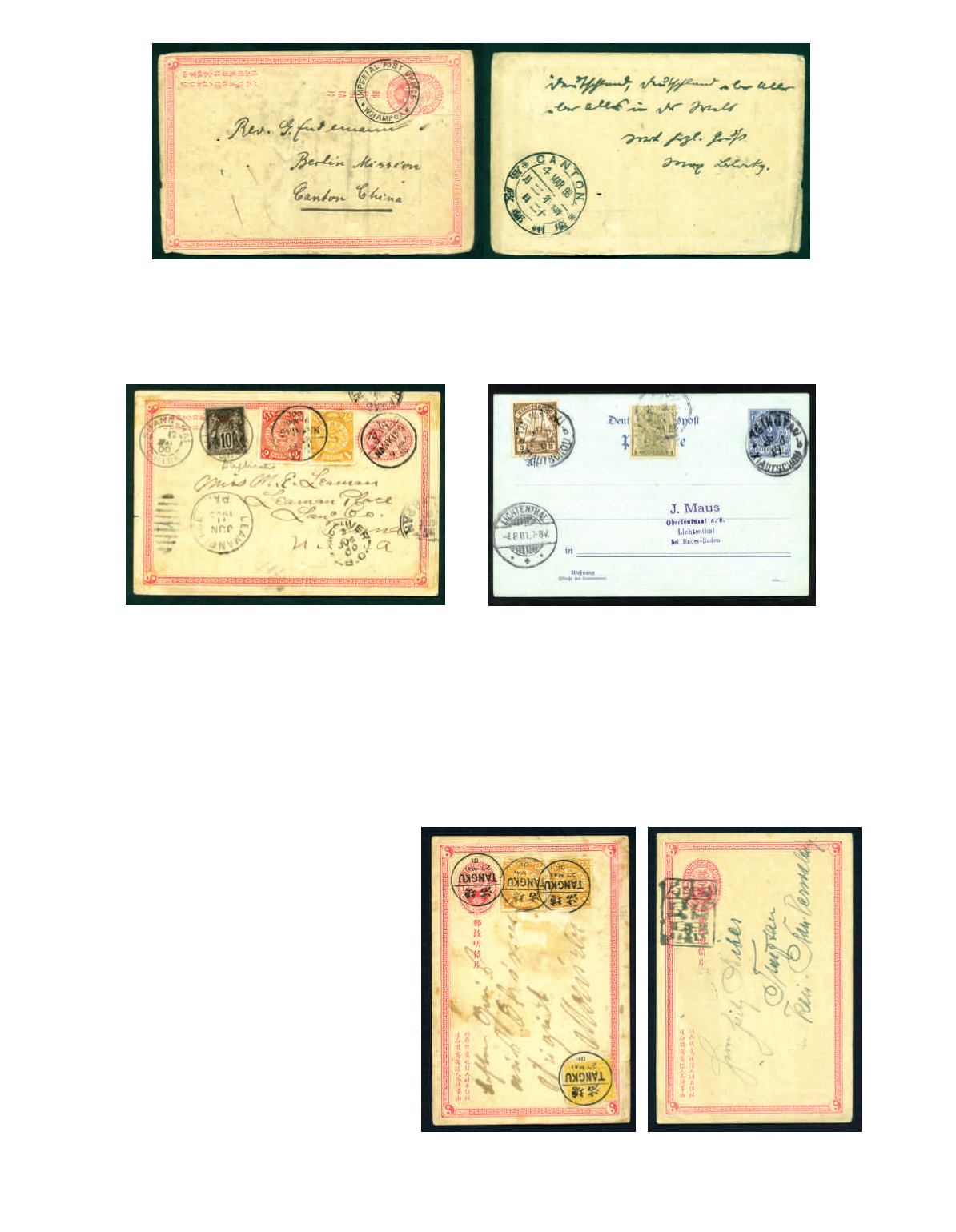1898 (4 Mar.) An ICP 1c red 1st issue stationery card to Berlin Mission, Canton China. Tied by the rare double ring 'IMPERIAL