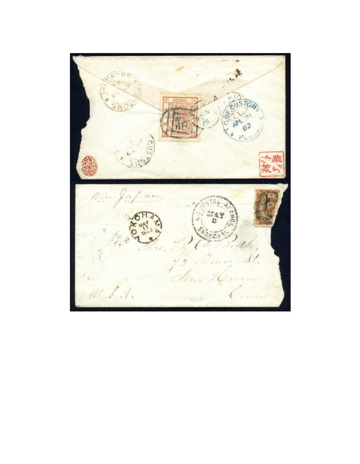 1882 (21 Apr.) A mixed Large Dragon/Japan cover from Peking to New Haven, Connecticut, via Japan. On front bearing