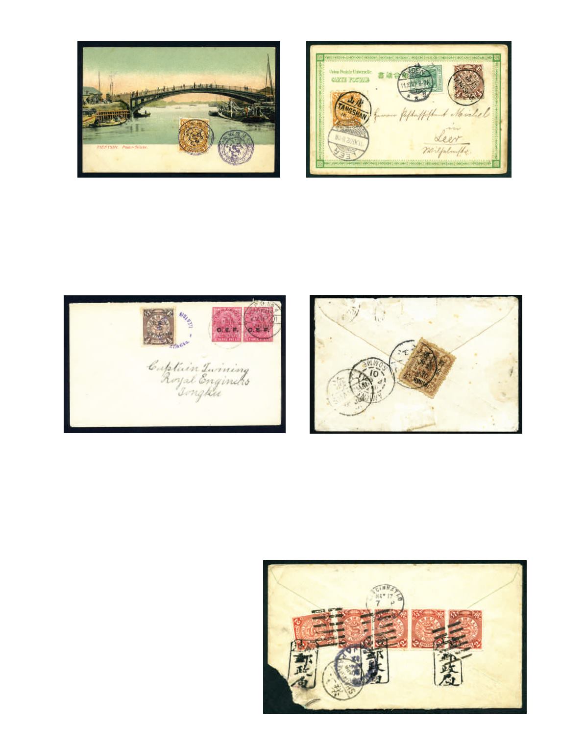 'TANGSHAN' cds, with Germany 5f green alongside, tied by 'FMDEN/11/10.02' cds, this stamp is used as postage due, and