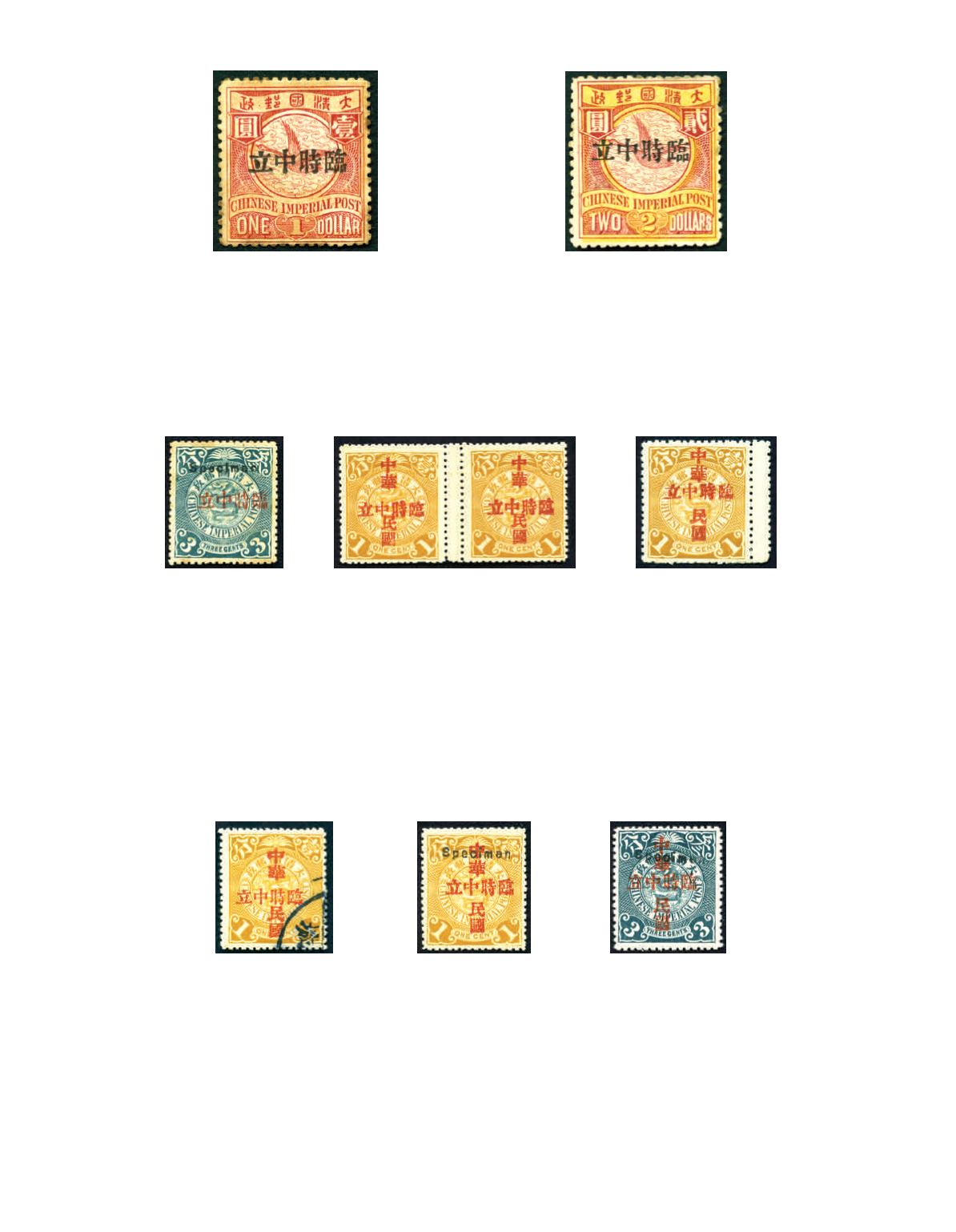 1912 Overprinted ‘ROC, Provisional Neutrality’ on Coiling Dragon 1c ochre, with ‘Specimen’ in black, unmounted and signed by