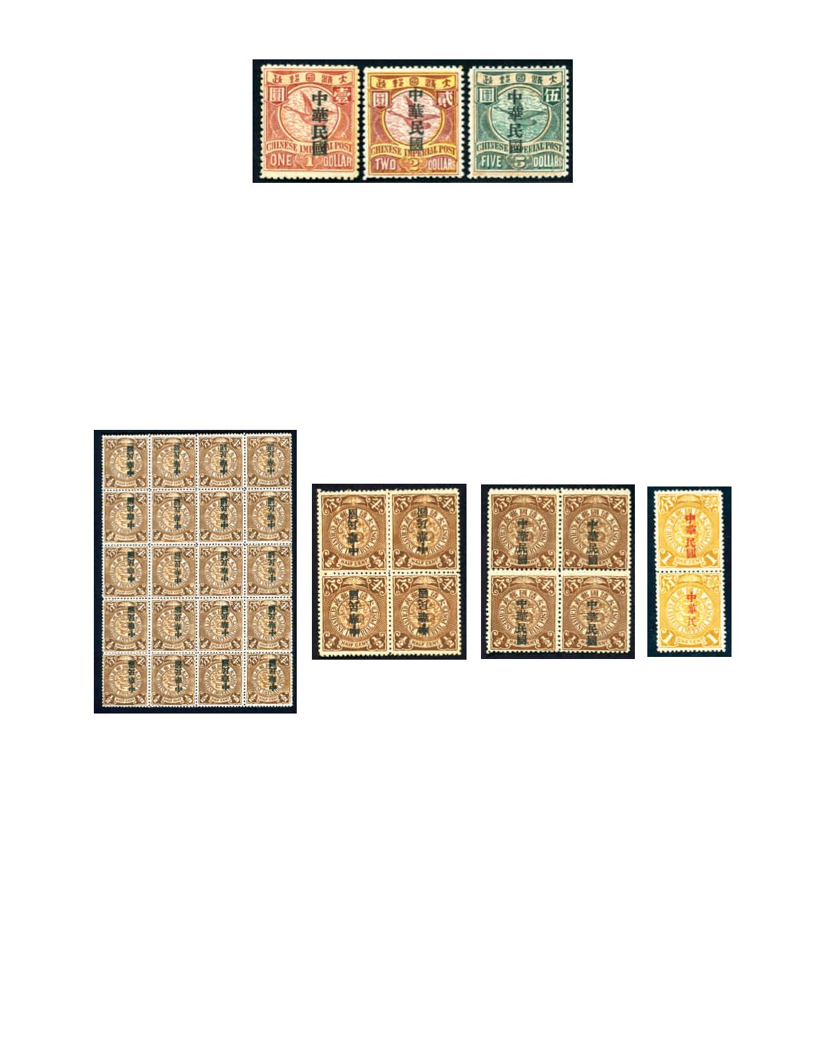 1912 Statistical department overprinted ‘ROC’ on Coiling Dragon 1/2c chocolate block of 15, overprint inverted variety, mint and