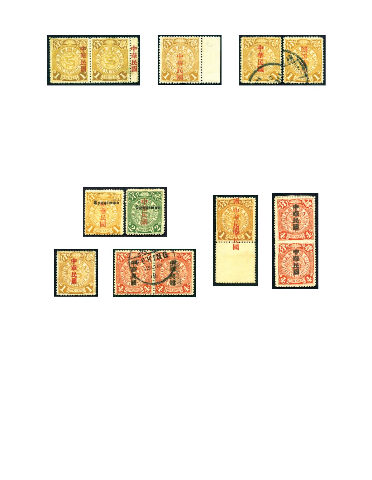 1912 Statistical Department overprinted 'ROC' on Coiling Dragon 1c ochre with overprinted inverted variety, plus normal one for