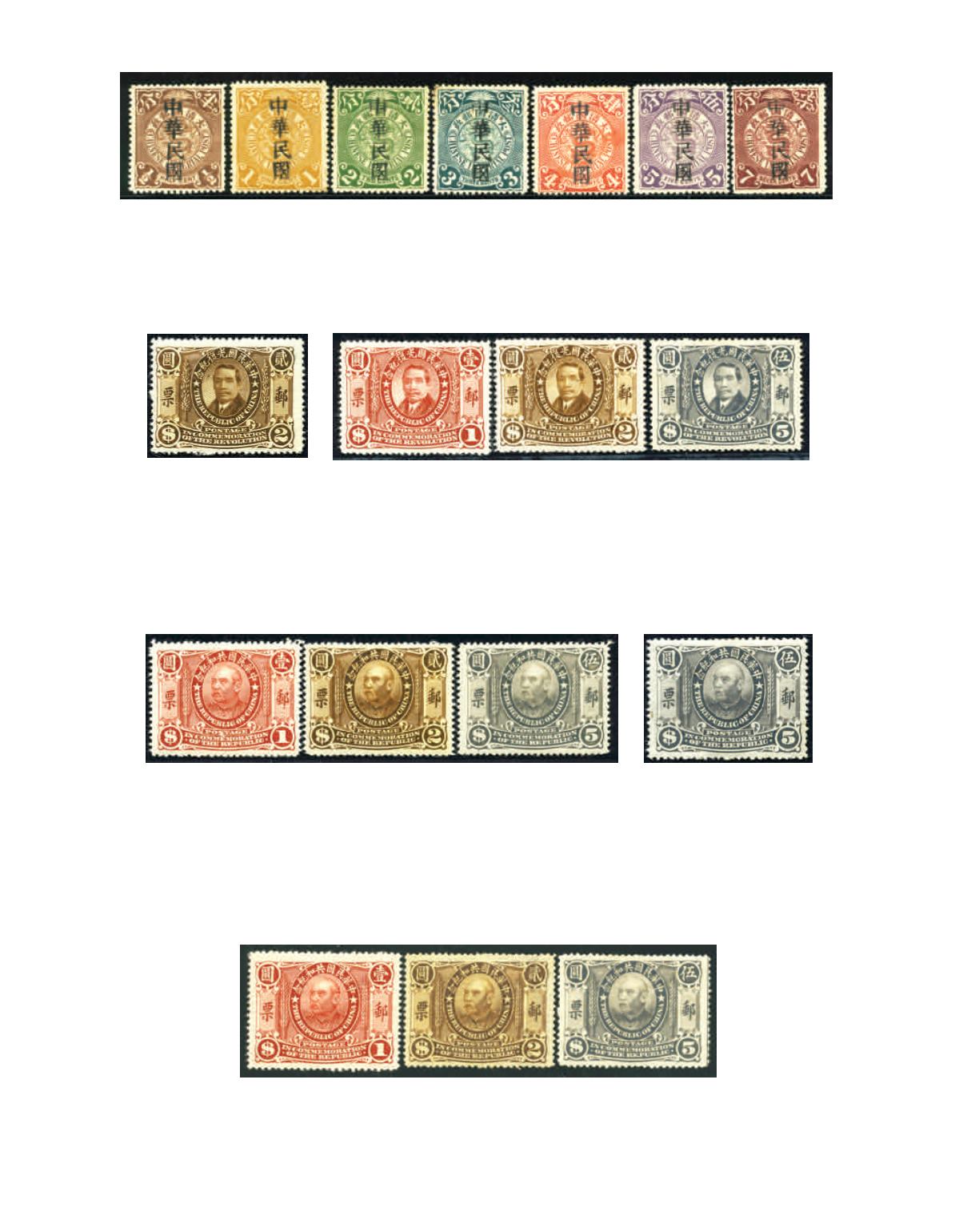 1912 Local overprints of 'ROC' in black char. On Coiling Dragon, Kweiyang opt. set of 7, 1/2c, 1c, 2c, 3c, 5c, 5c and 7c, mint