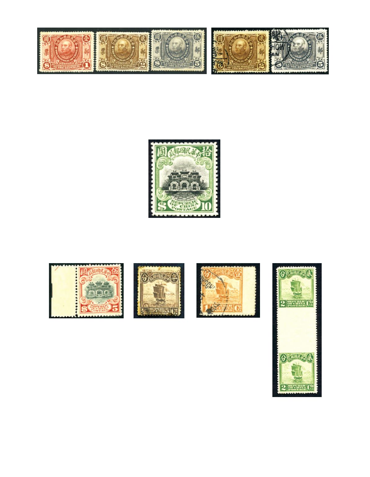 1913 London print Junk, short set from 1/2c to $2, plus 2nd Peking print $5 with sheet margin, all