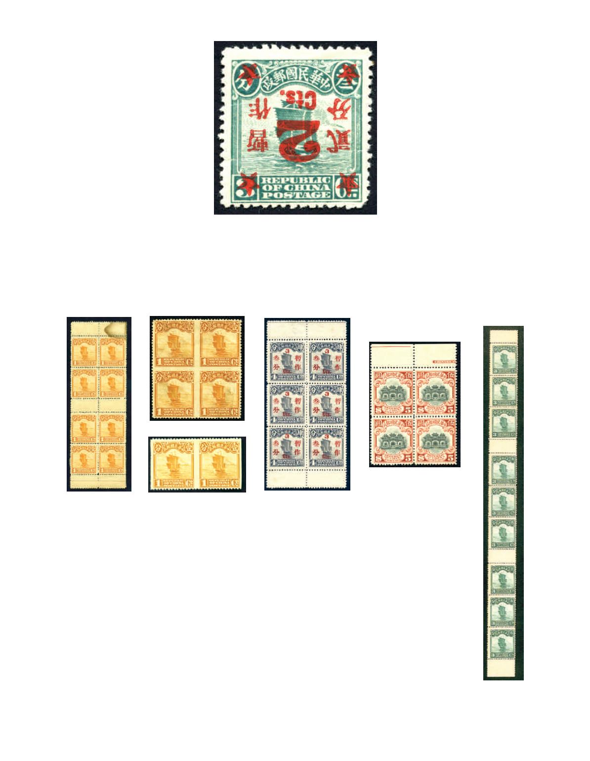 1923 A small range of the 2nd Peking print Junk stamps originally from booklets, including 1c, 3c on 4c gutter