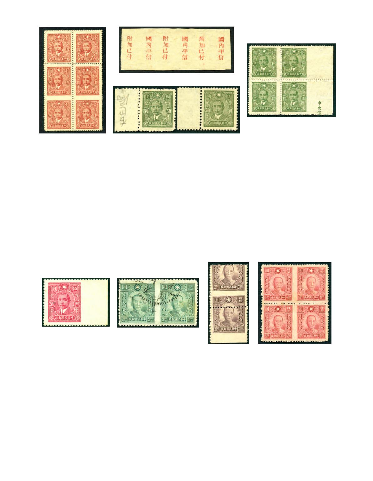 1942 SYS Paicheng print, irregular perf. thick paper, $30 horizontal pair with misperf. shifted downwards variety, unused and no