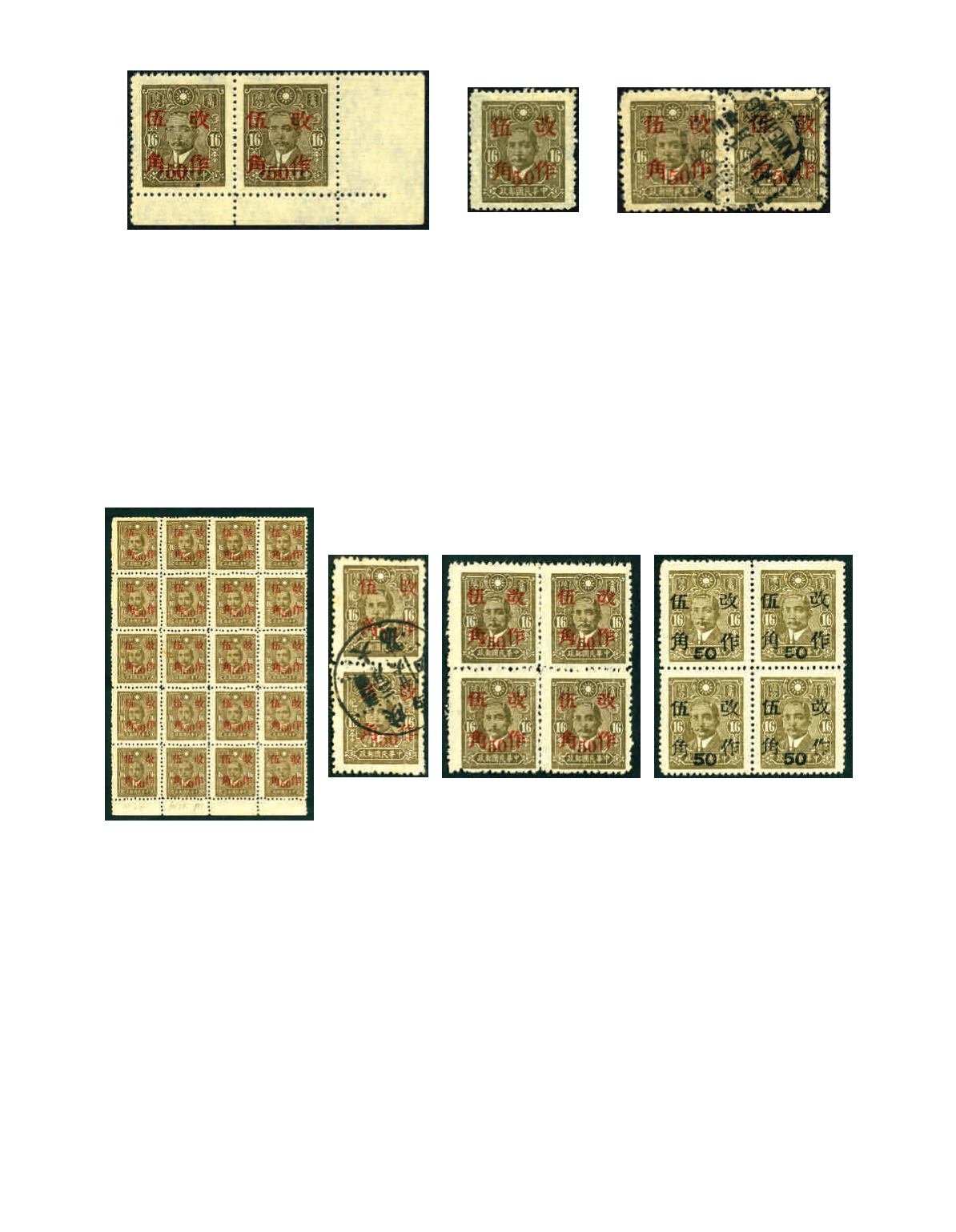 horizontal pair x 2, single stamp x 4, all used. Chan 642k. Cat. value USD 1,200. Photo