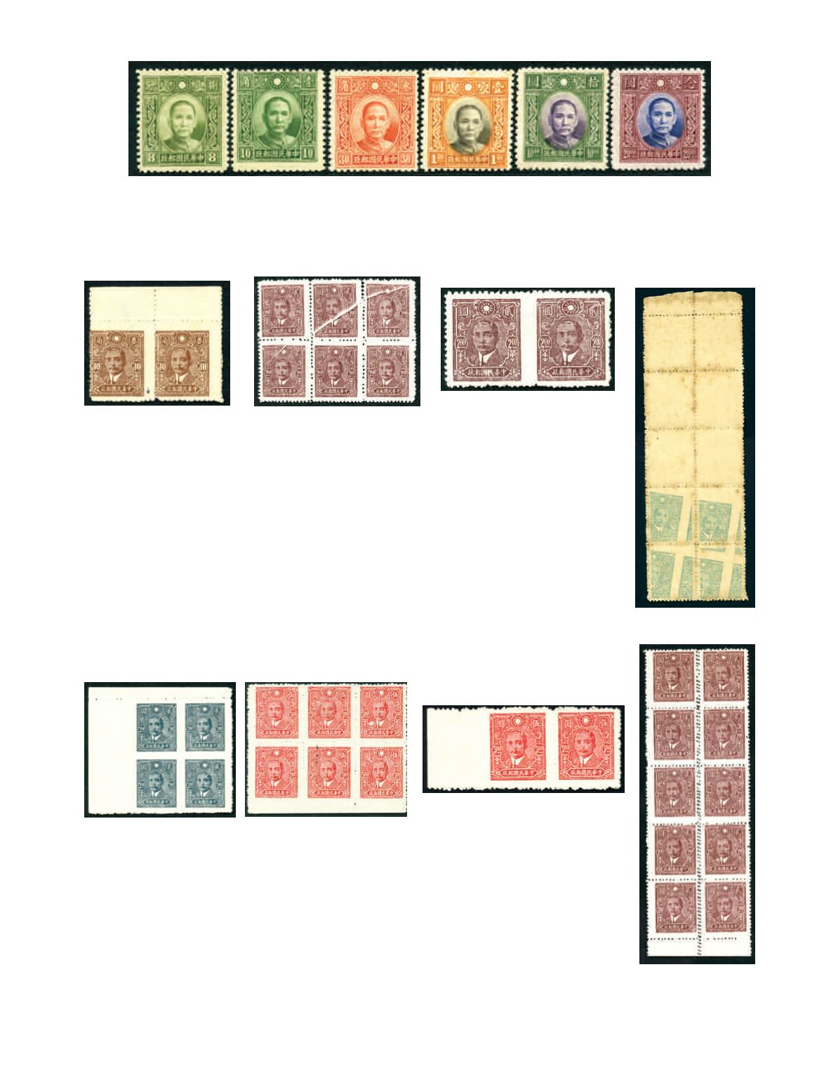 1944 SYS Typo Paicheng print $2 purple brown block of 10 with extra vertical perf. variety, plus $2