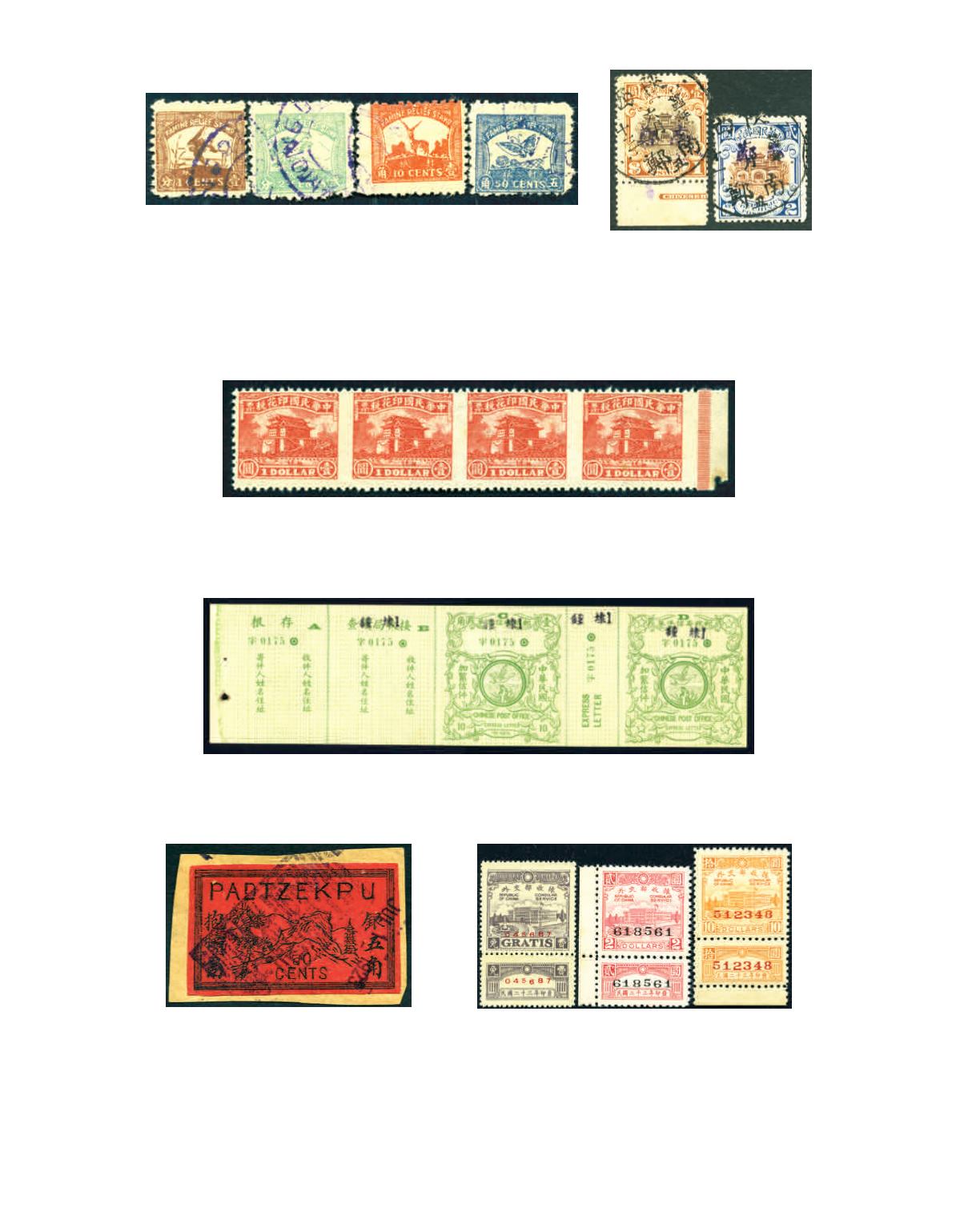 A ROC period Famine Relief Stamp x 4, 1c, 2c, 10c and 50c, all tied by blue chop, unusual. Fine. Photo