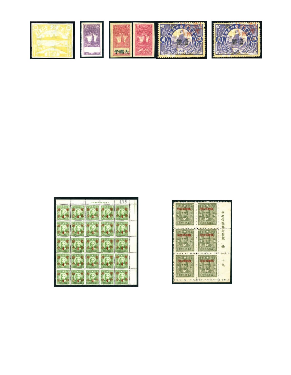 A selection of SYS Central Trust print issues imprint blocks, mostly are block of 6, including opt. 'Limited for use in Sinkiang' on