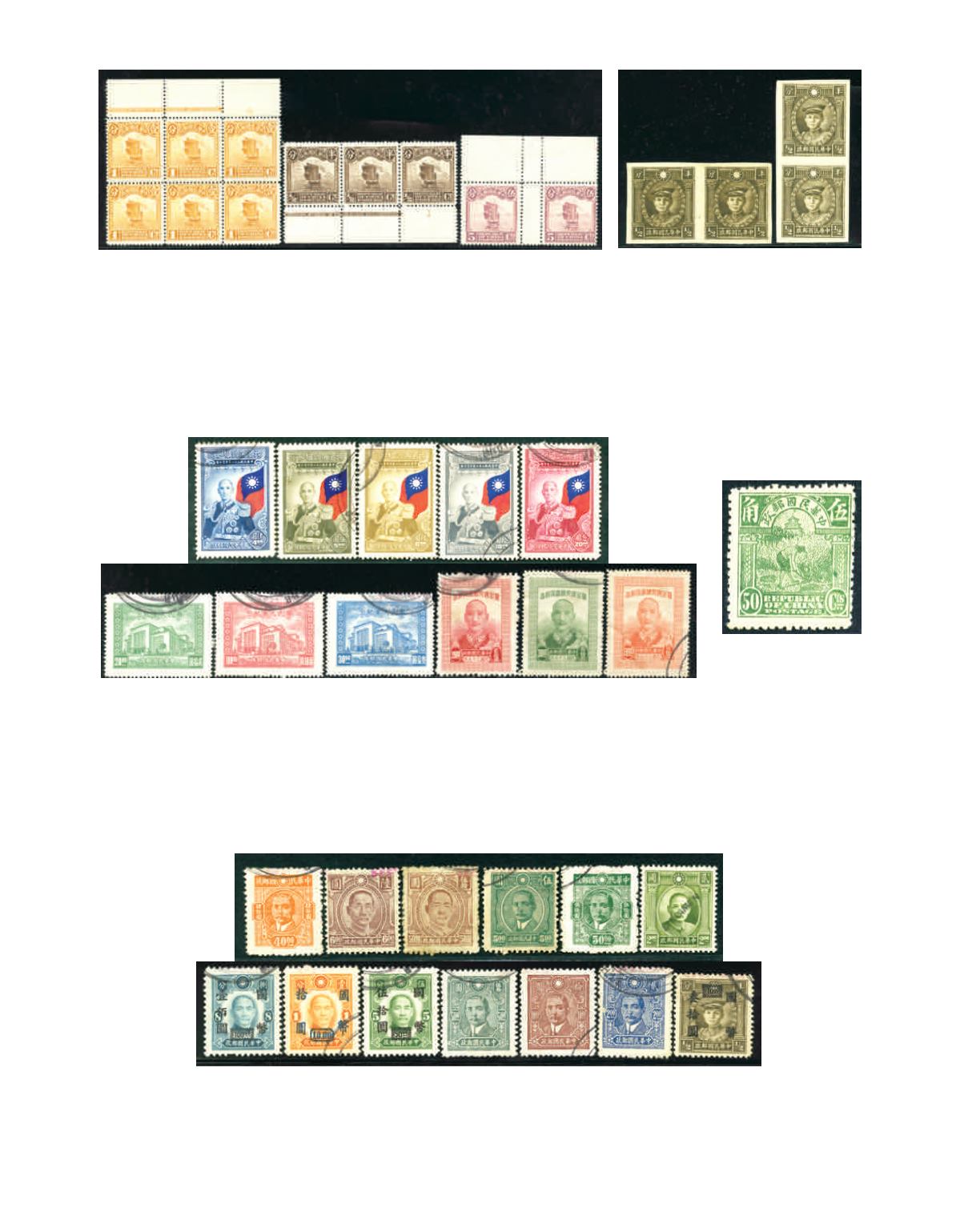 of 4, plus SYS Chung Hwa print 15c deep violet brown block of 4 imperf. And SYS Paicheng $20 imperf. Pair and single x 4,