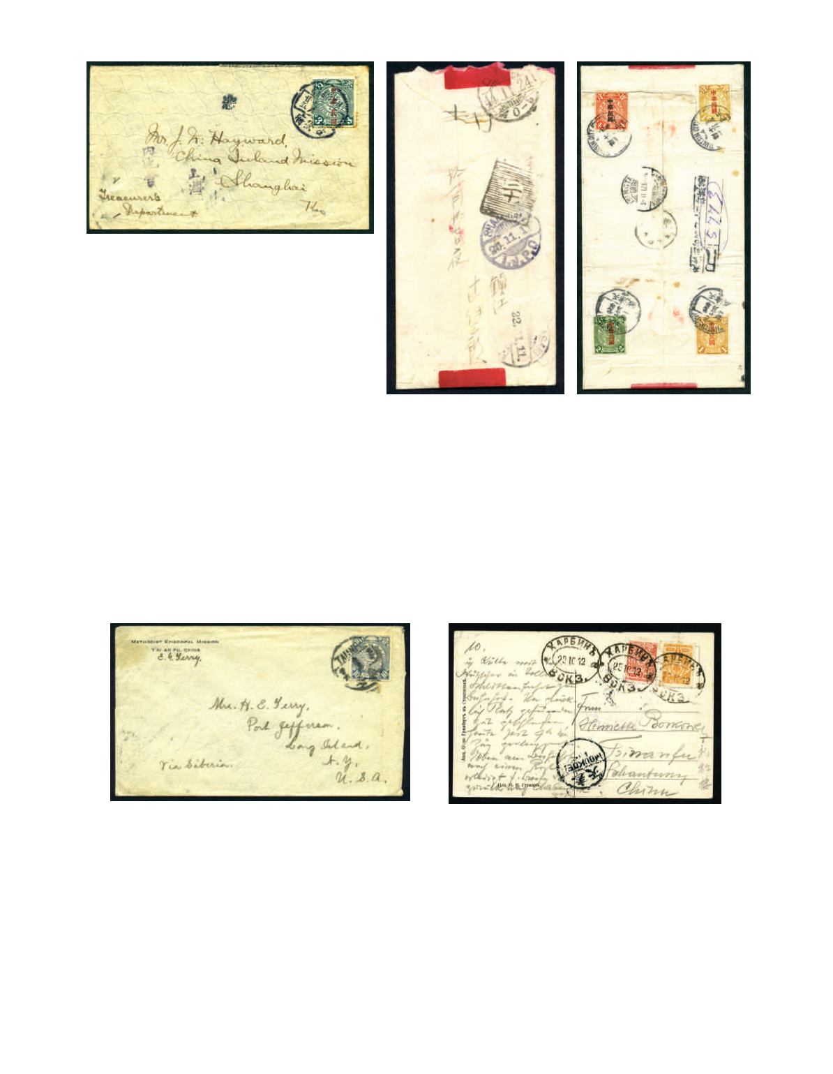1912 (26 Nov.) A cover from Taian to USA, via Siberia, bearing CIP Coiling Dragon 10c ultramarine, tied by bilingual ‘TAIAN’