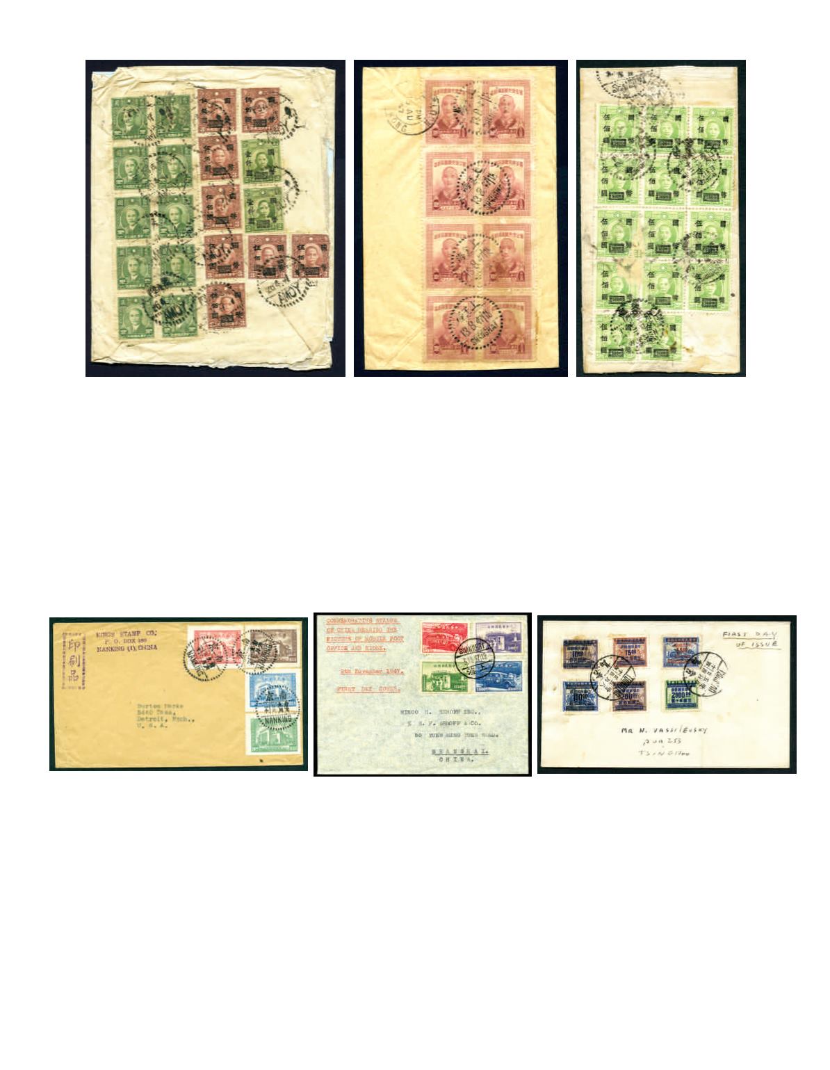 1947 (13 Nov.) A cover bearing CNC 3rd Shanghai Union surcharge $500 on $20 green SYS London print, irregular block of 14,