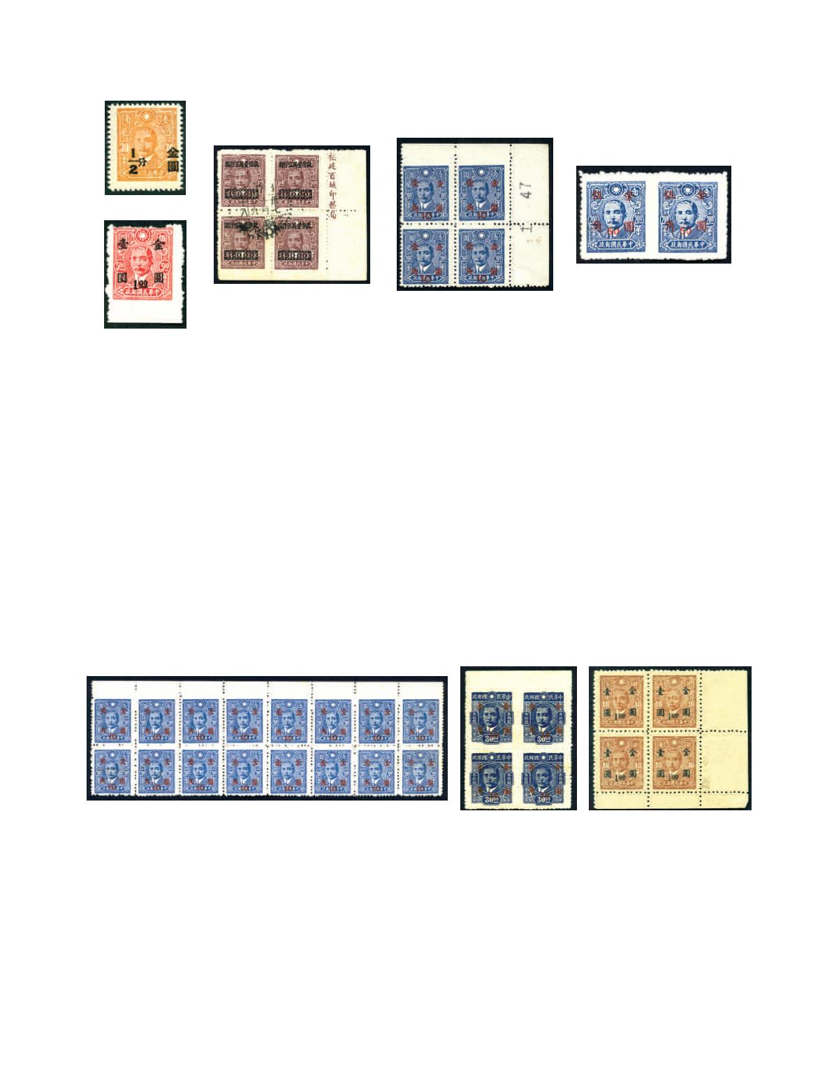 1948 A small selection of Gold Yuan surcharged on SYS issues, including blocks and variety, total 13, all unused and issued