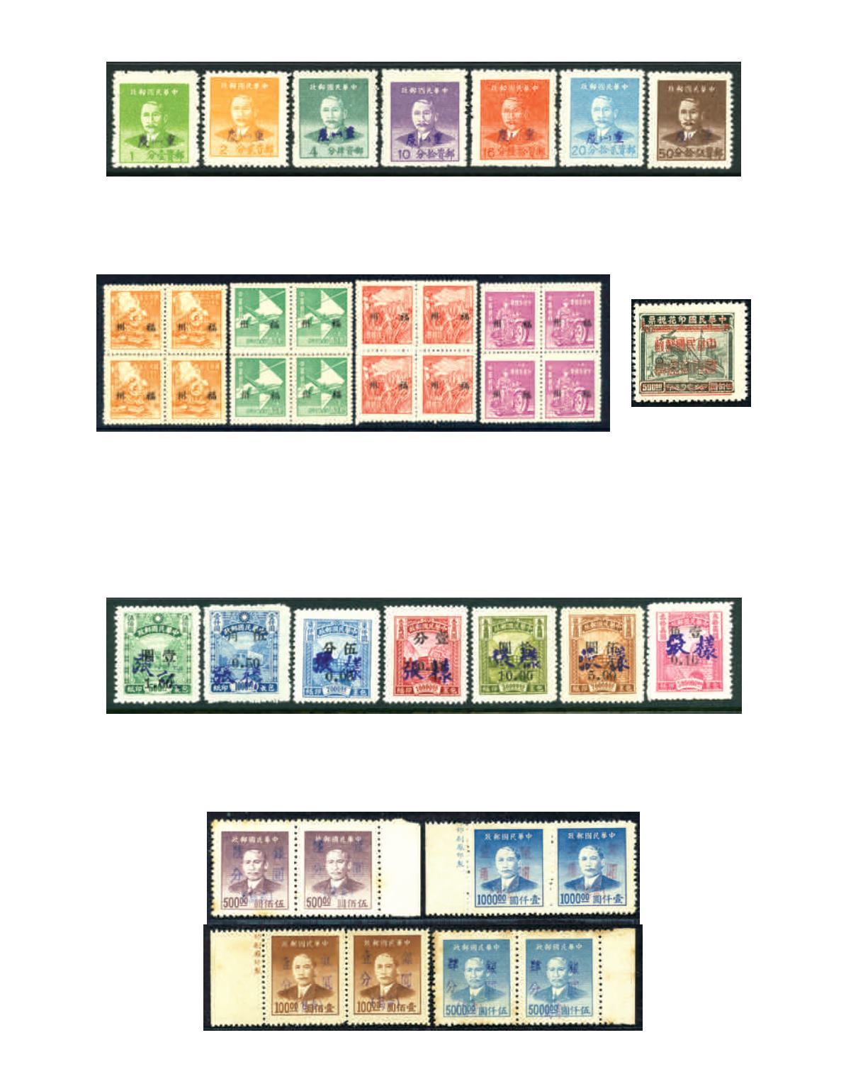 1949 Silver Yuan Chungking local surcharged on SYS Chungking Hwa Nan print set of 4 and 3 unissued, unused and no gum as