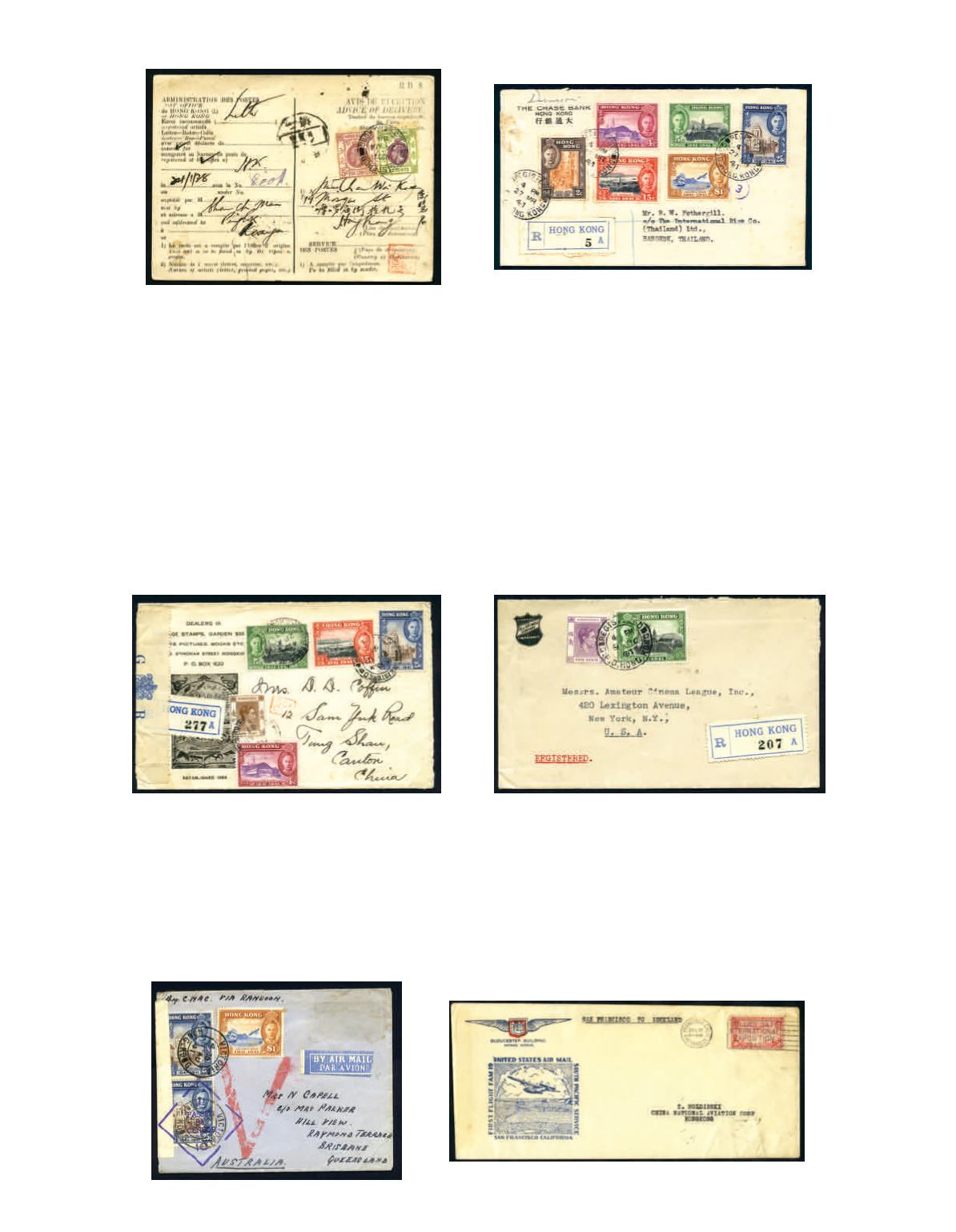1936 (5 Nov.) An air mail reg. to Canton, bearing complete of Silver Jubilee, and a few low values og KGV, tied by 'HONG