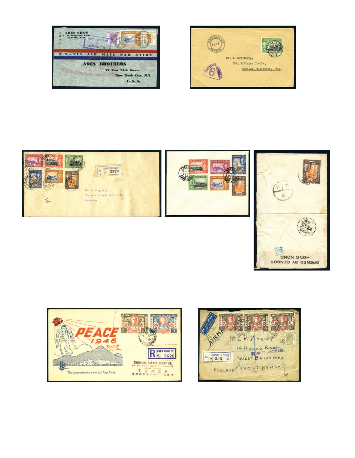1946 A group of commercially used covers all bearing 1946 Victory issues, all sent to overseas including reg. cover. Good to fine.