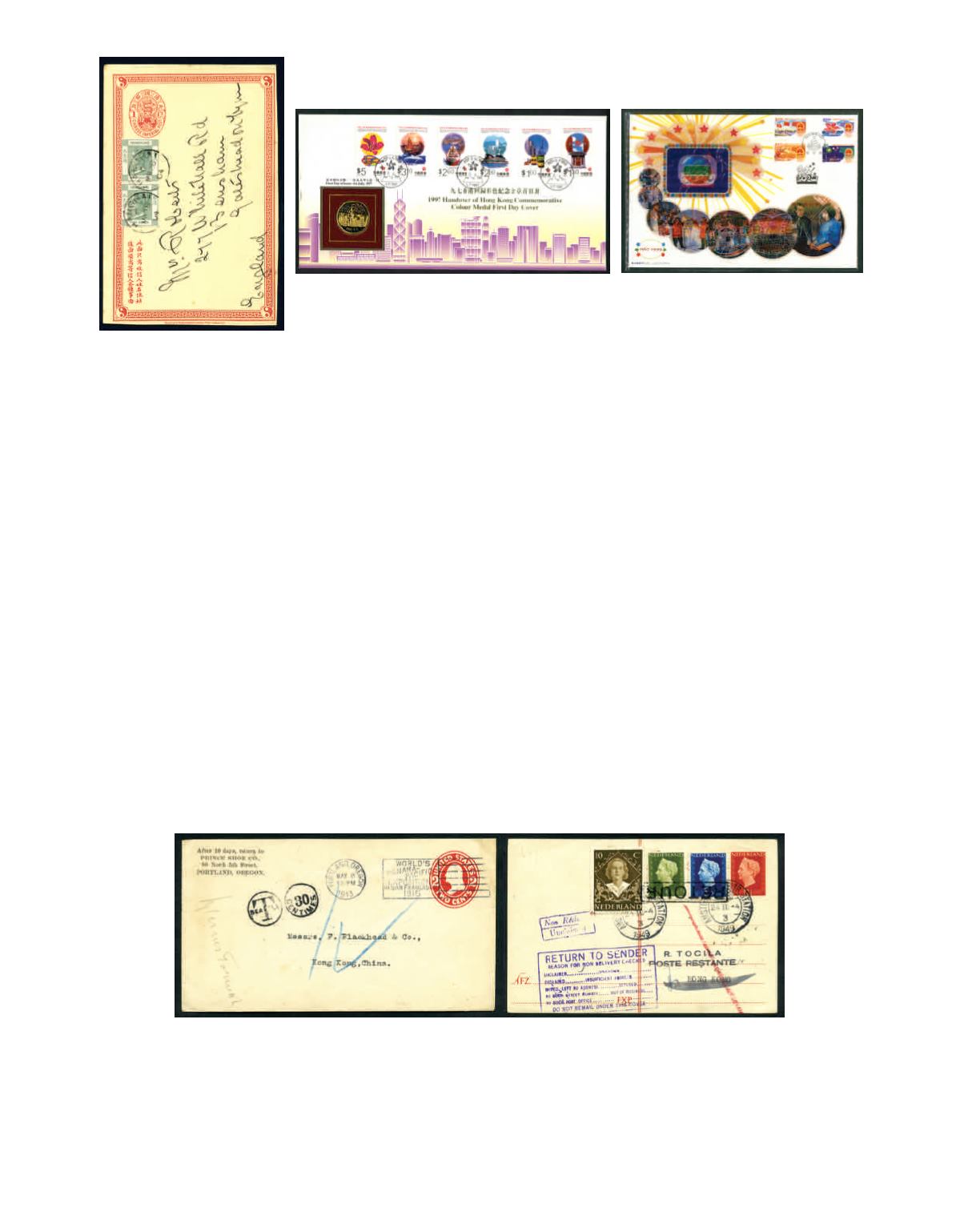A small group of postal history items x 8, including 2 incoming Postage Due mail from USA to HK, with Paquebot cancel, fine.