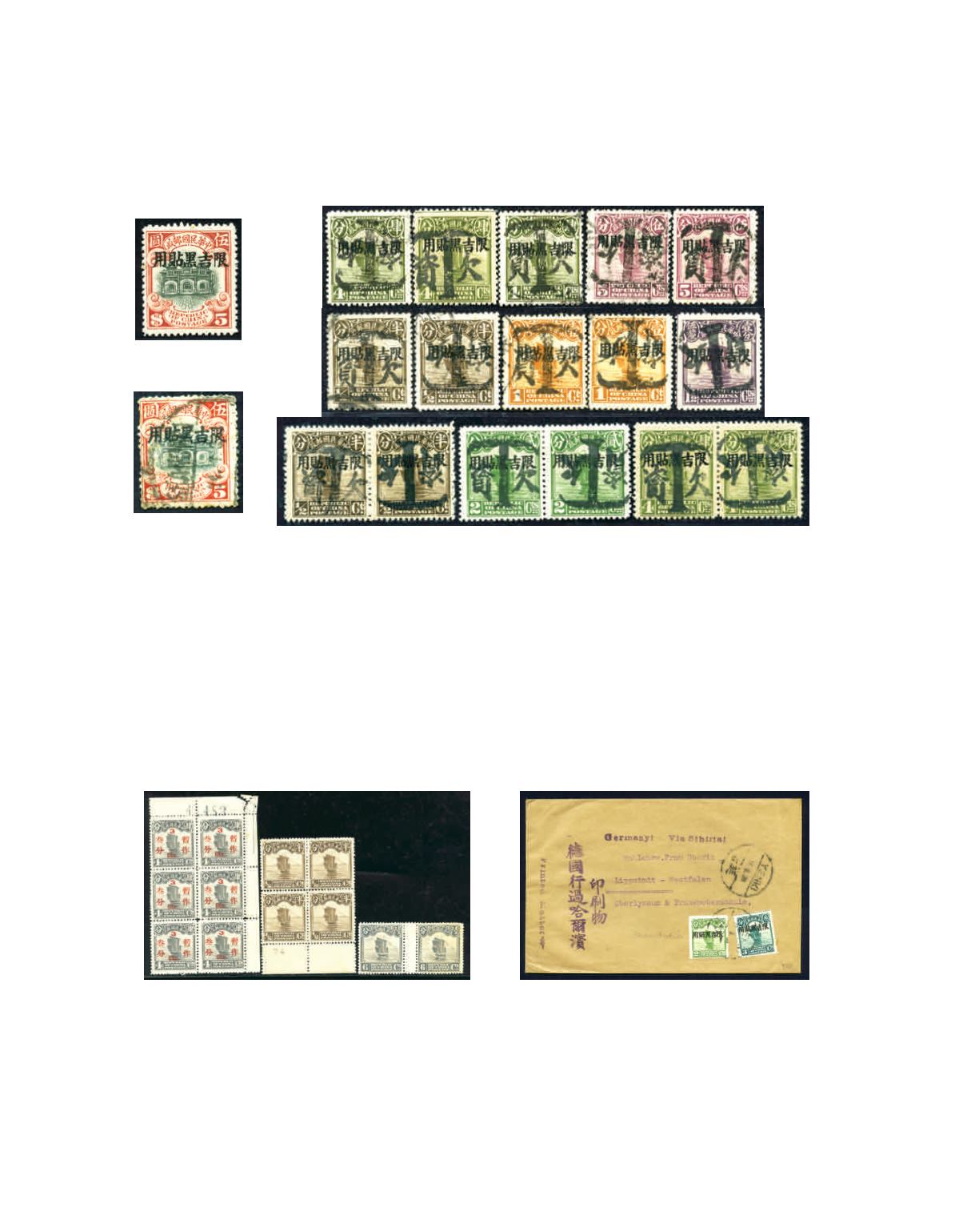 A small selection of overprinted 'For Use In Ki-Hei' on Junk issue, with Manchuria War overprint 'Postage Due' in black on each