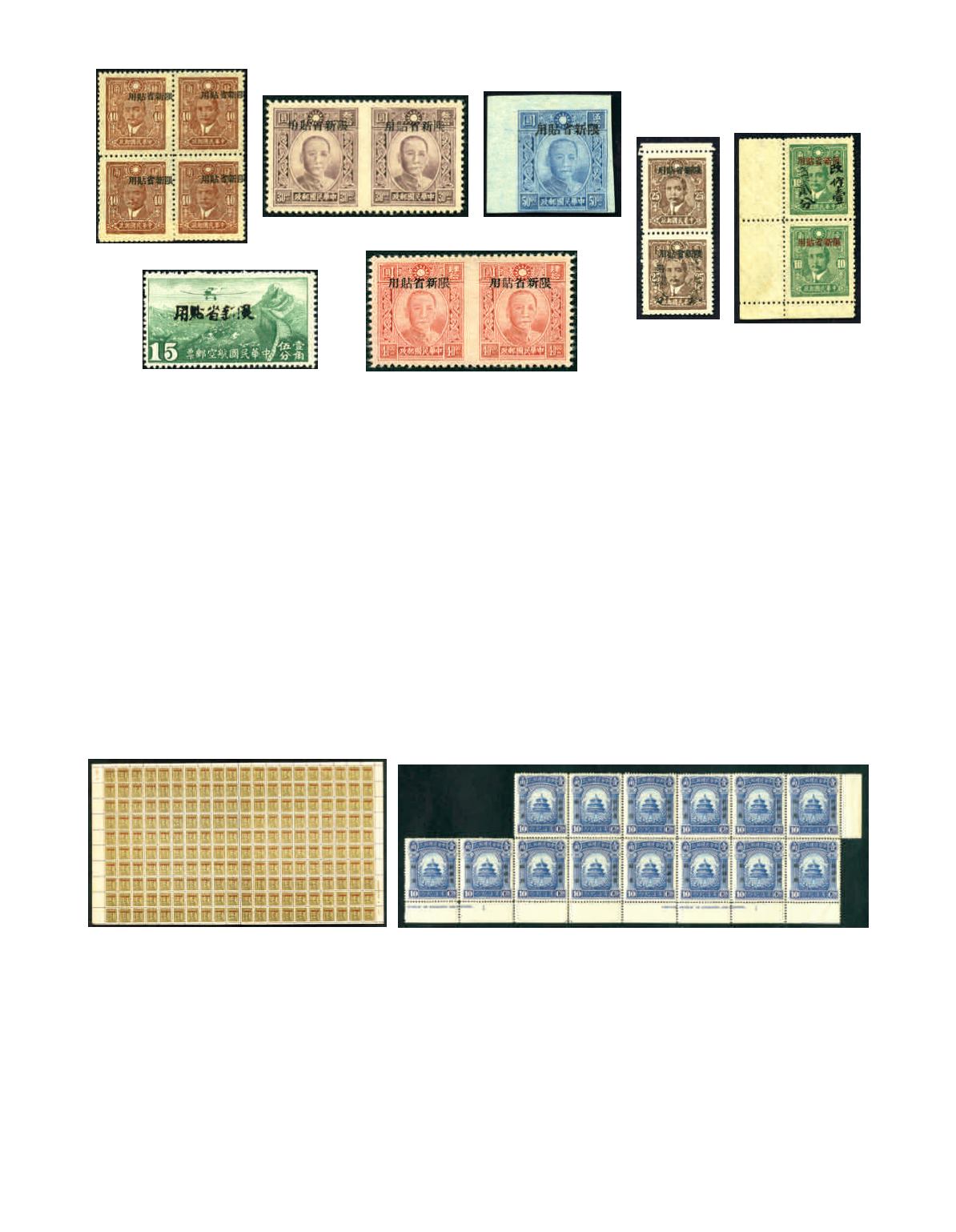 1923 Opt. 'For use in Sinkiang' on Constitution issues, including 1c block of 4, strip of 5, irregular block of 7 and 10c irregular