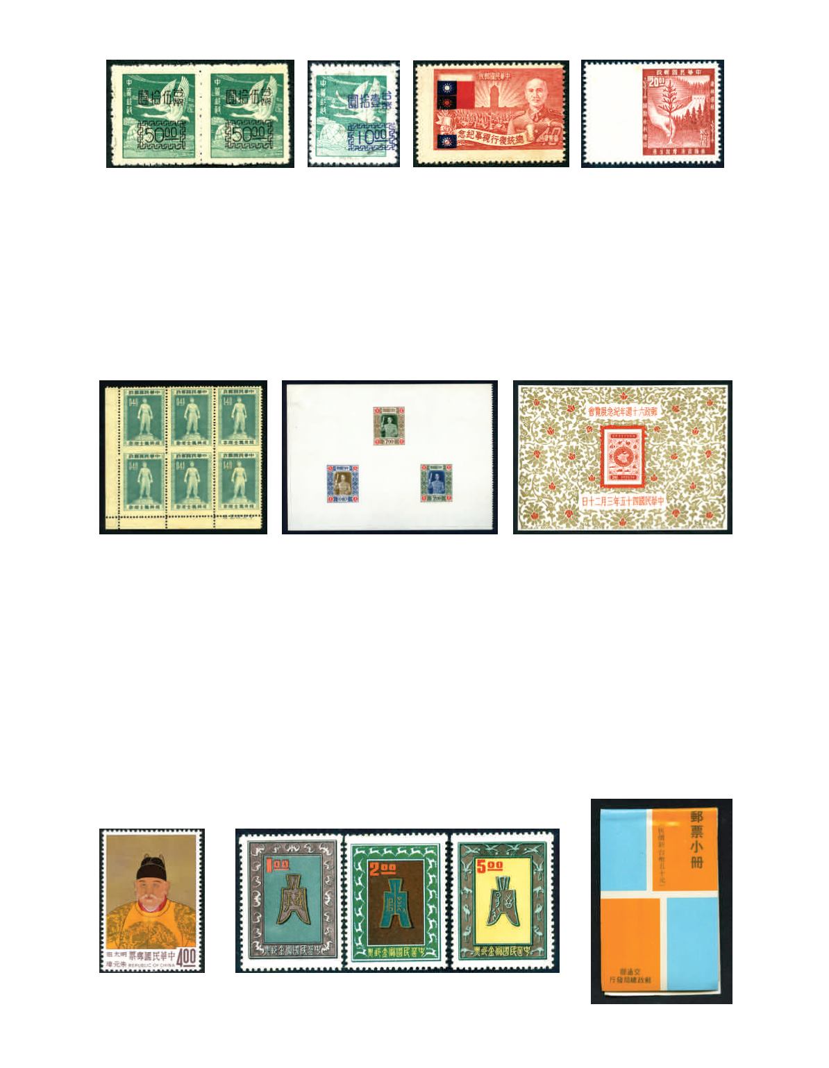 1955 President Chiang Kai Shek 2nd issue miniature sheet without tag and complete set of 3, hinged and light toning. Sc1126a,