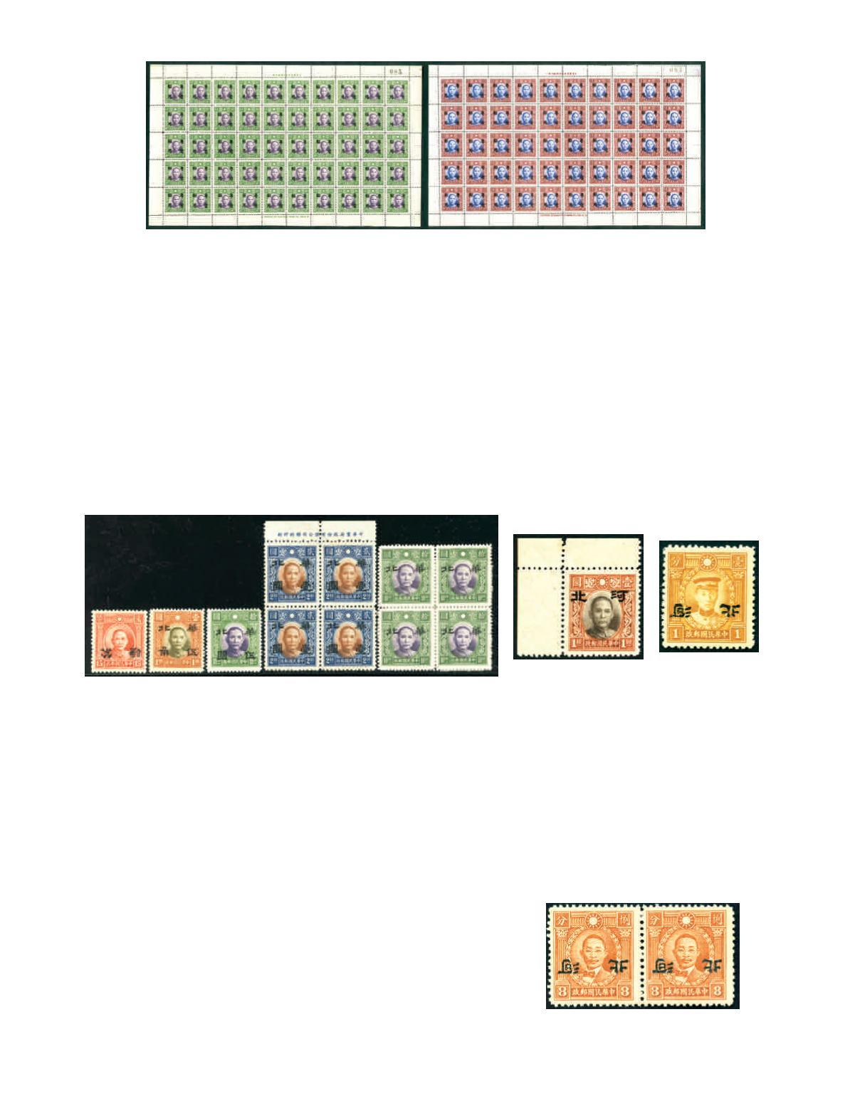 of surcharged or overprinted on SYS various printings, Chung Hwa print, Dah Tung print etc., and Martyrs HK print and Peking