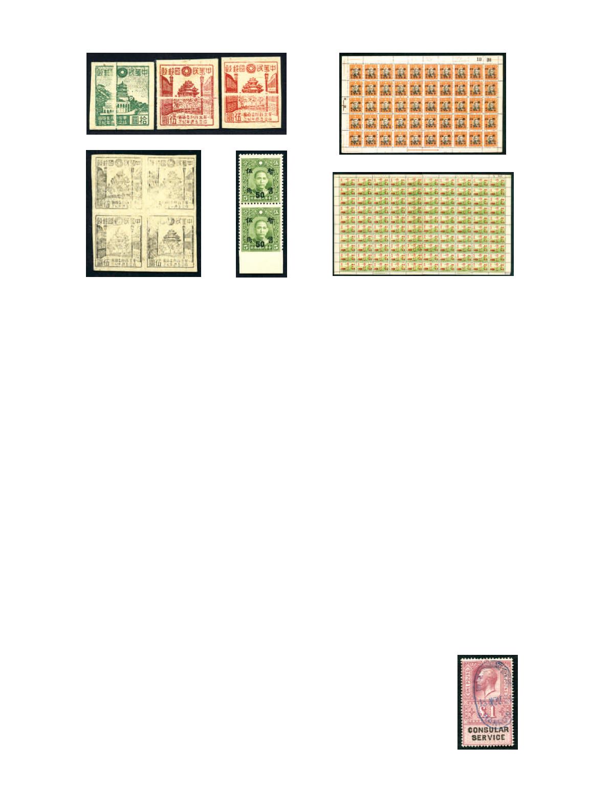 1944 The Burial of Puppet Chairman Wang $1 on SYS native soft paper, in sheet of 50 with all margins, unused and no gum as