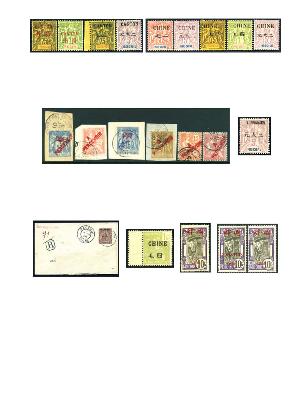 1908-19 A small range of surcharges with 'CANTON' overprint or value in French on Indo-Chine, Native girls high values