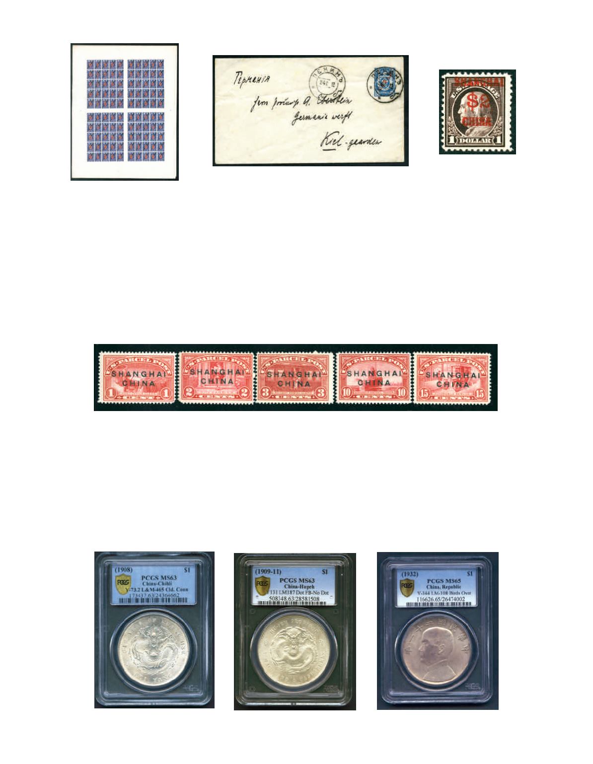 1913 Overprinted 'SHANGHAI CHINA' on US Parcel Post, set of 5, including 1c, 2c, 3c, 10c and 15c, mint and lightly hinged,