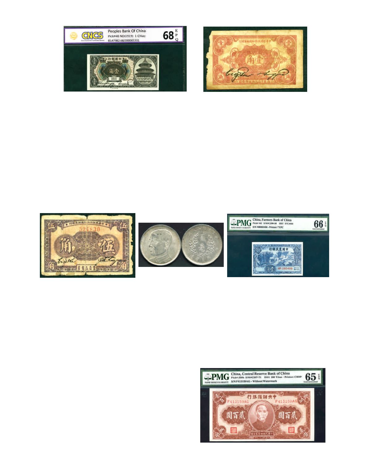 1937 Farmers Bank of China 10 cents, no. MR085486 and 1949 Provincial Bank of Kweichow 1 cents, no.A171282, both