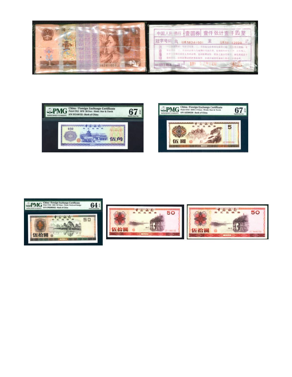 The People Bank of China/Foreign Exchange Certificate, 50 cents no.Z0148133 EPQ67 and 10 yuan no.ZP895236 EPQ65. Photo