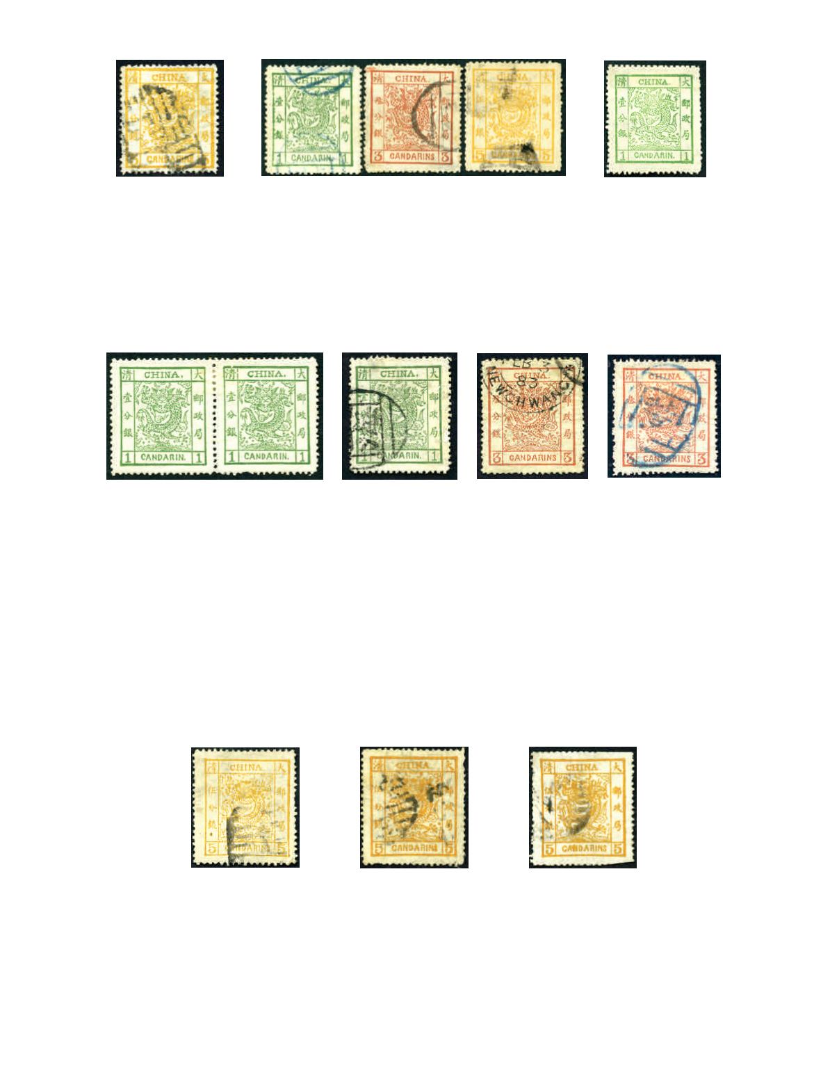 1882 Large Dragon wide margin, 3 cands brown red, tied by full strike of 'PEKING' seal chop, fine used. Chan 5. Photo