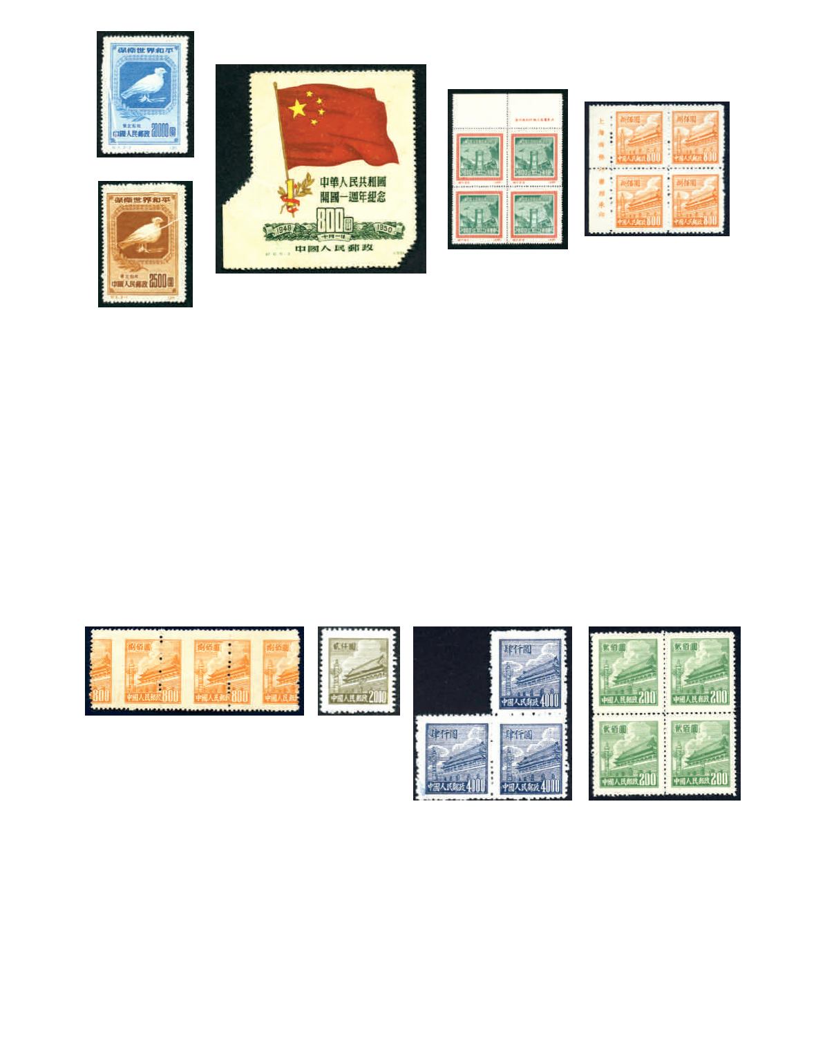 1950 (C6) The 1st Anniv of People's Republic, original print, $800 printing error, showing an extensive left margin, diagonal