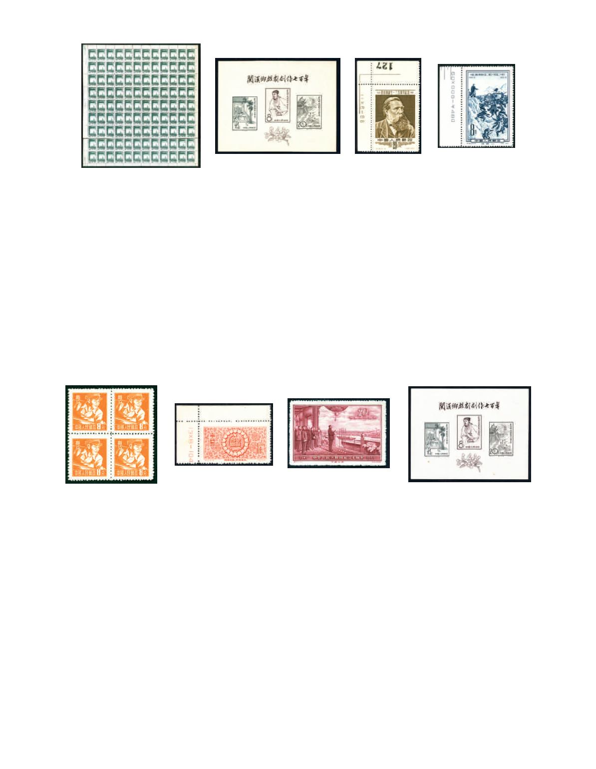 1957 10th Anniv of Founding of PRC (C71) x 2, unused and no gum as issued. Photo