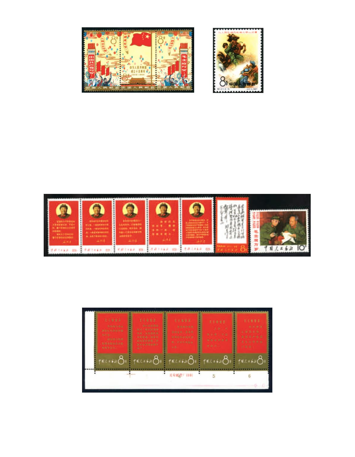 1967 Long Live Invincible Chairman Mao's Thought (W1) complete set of 11 with strip of 5 x 2. Folded and golden colour,